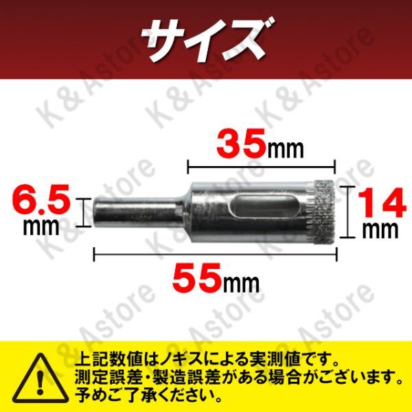 ダイヤモンドホールソー 14mm ホールカッター ガラス タイル 石材 陶器 磁器 穴あけ ホルソー コアビット 電動ドリル ドライバー 切削工具