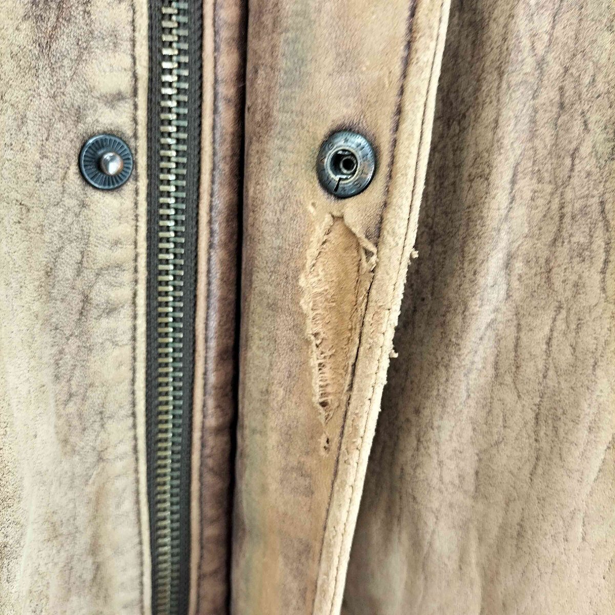 状態詳細 | 全体的にかなりの色褪せがございます。袖口と襟、フロント比翼裏にダメージがございます。袖にシミ汚れがございます。第4.5スナップボタンの受け手が破損しております。フロント右ポケットに破れがございます。 |