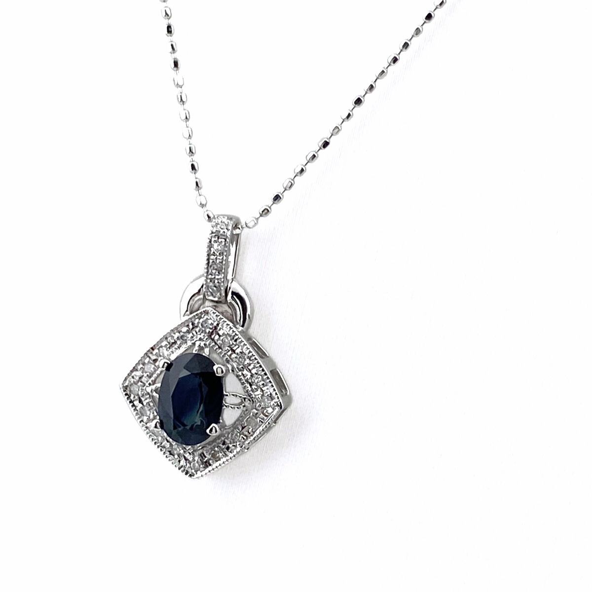 サファイア デザインネックレス WG ホワイトゴールド ペンダント メレダイヤ ダイヤモンド ネックレス K18 WG サファイア レディース 【中古】 |