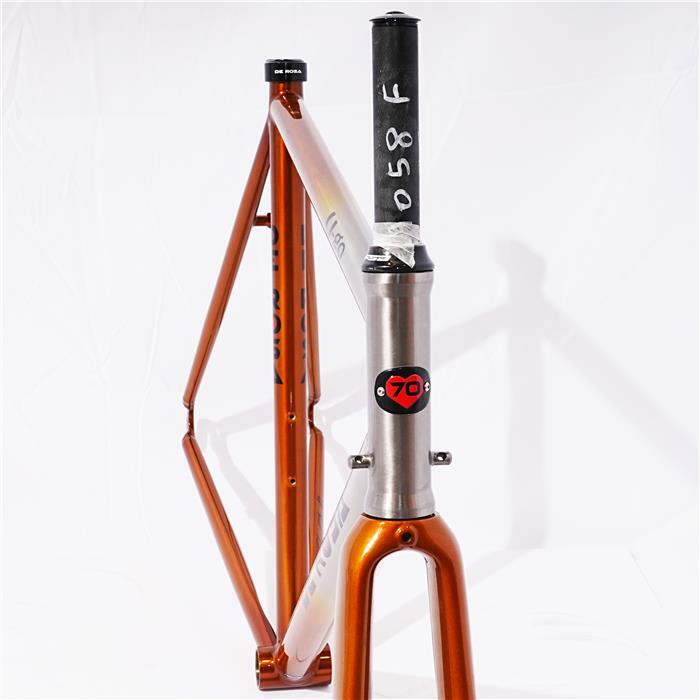 ![]() ■状態:新品 ※サイトの表示が『お取り寄せ(or取寄)』の商品にきましては、事前に仕入先様へ在庫、納期の確認を行いますので、お手数ですがご注文の際は事前に当店へ在庫と納期のお問い合わせをお願い致します。 ■商品説明 ・DE ROSA(デローザ) ウーゴ・デローザが1953年興したイタリアンバイクブランド。 コルナゴと仲違いしたエディー・メルクスを支えたフレーム職人として名を馳せる。 現在では3人の息子達とカーボン、クロモリ、チタンとあらゆる素材から フレームを生み出している。 またフレームに描かれるハートのビジュアルアイデンティティはあまりにも有名。 ・TITANIO U-GO (ウーゴ) フレームセット Ugo De Rosaの手によってレーシングフレームとして生を受け、現代においても誕生当時と変わらぬ製法や手順で組み上げられるTITANIO。 その中でもオーバーサイズのダブルバテッドチューブ採用による剛性と密度感に優れるペダリングフィールを持ち、パワーのあるライダーに好まれる「TITANIO Solo」をベースに作られたDE ROSA 70周年記念モデル。スペシャルなカラーリングとヘッドチューブに輝く70th記念エンブレムが特徴です。 ■スペック ・サイズ:47 / 49 / 51 / 53 ・フレーム材質:チタン(Reynolds 3.25 triple butted Oversize) ・フォーク材質:カーボン ・重量(フレーム+フォーク):2130g(サイズ53 with BR 54 実測値) ・Fメカ:バンドΦ31.8mm ・シートポスト径:27.2mm ・BB:BB ITA (70mm) ![]() ■特記事項 ・商品画像は製品イメージです。予告なく仕様やデザイン等の変更がある場合がございます。 予めご了承ください。 |