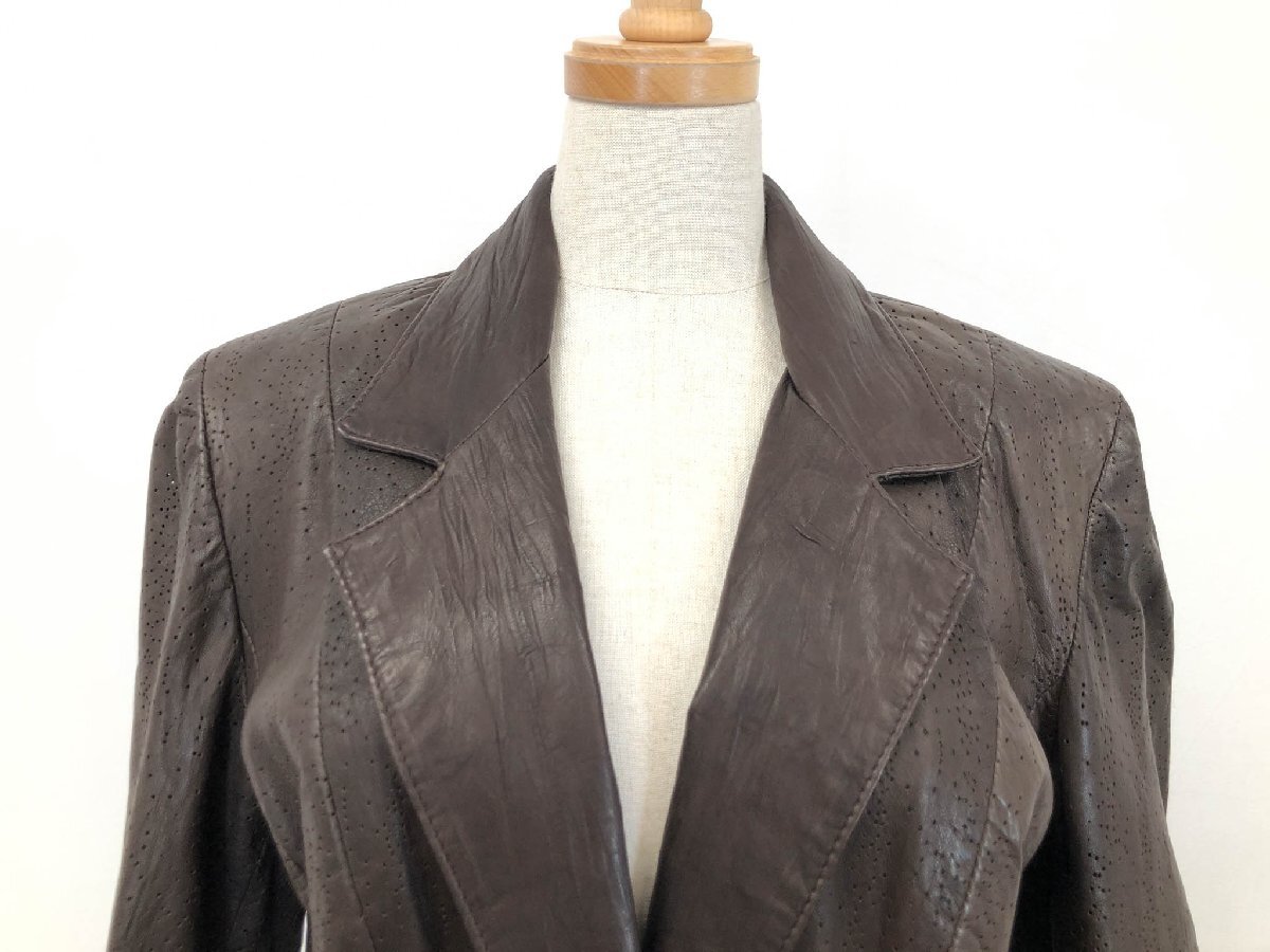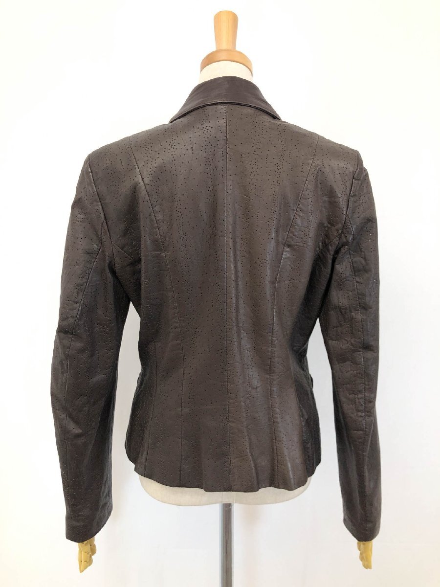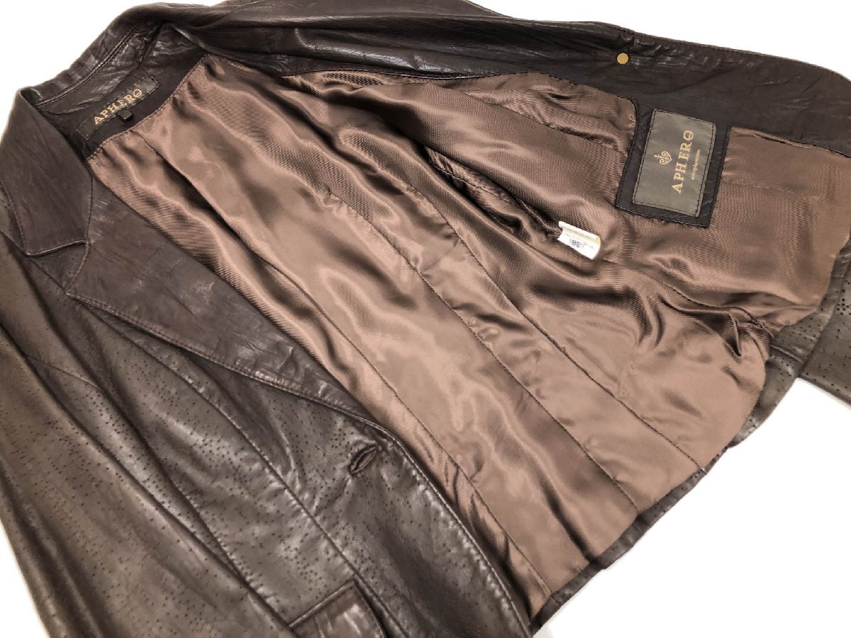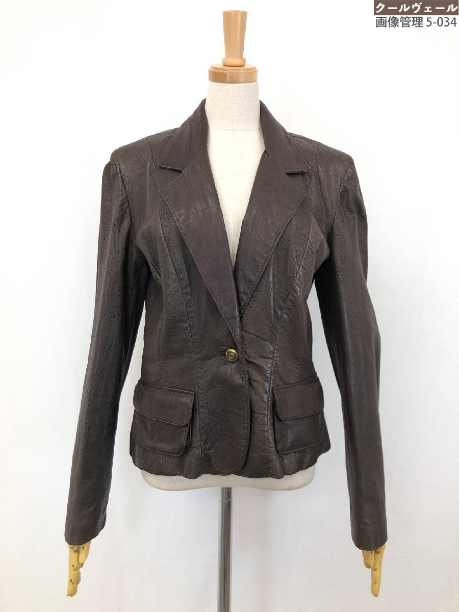 【APHERO】シングル1ボタン 本革 パンチングレザージャケット (レディース) size38 ダークブラウン系 ◇17LJ1382◇