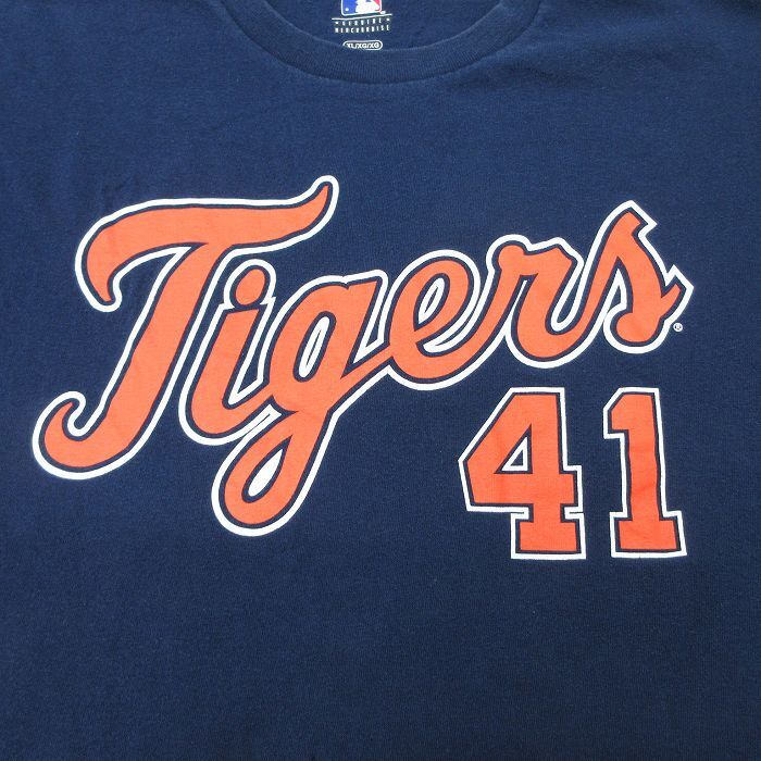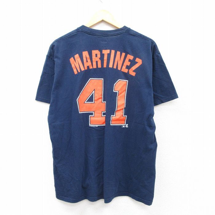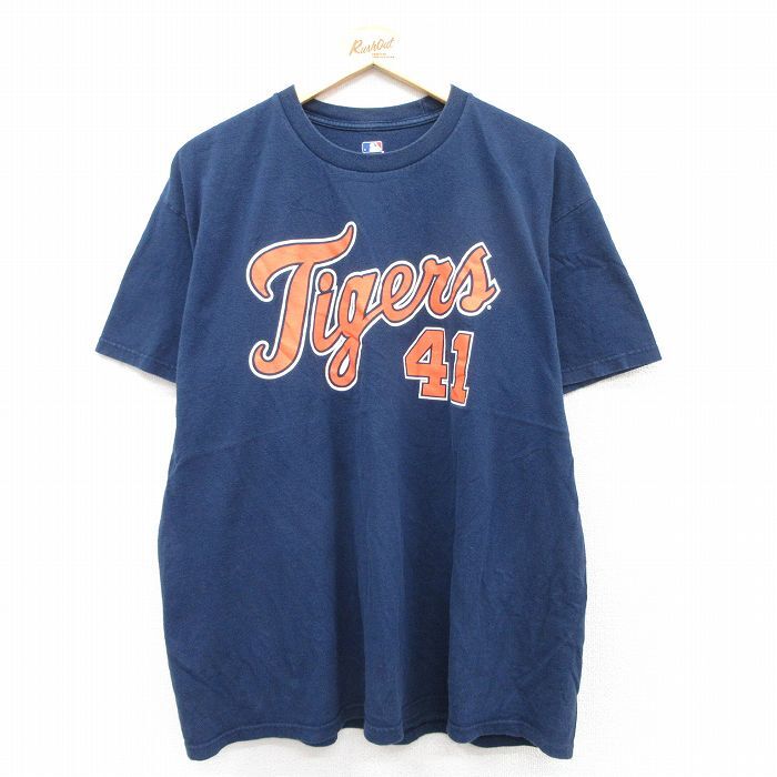 【商品名】 XL★古着 半袖 Tシャツ メンズ MLB デトロイトタイガース ビクターマルティネス 41 クルーネック 紺 メジャーリーグ ベースボール 野球