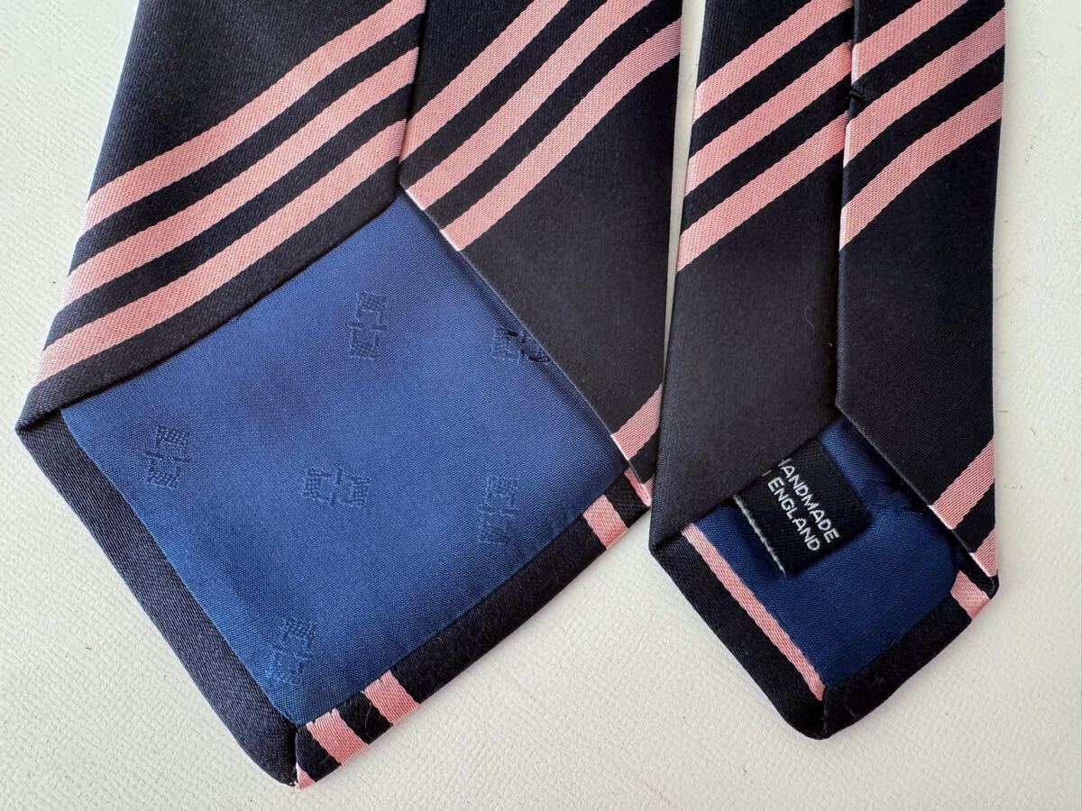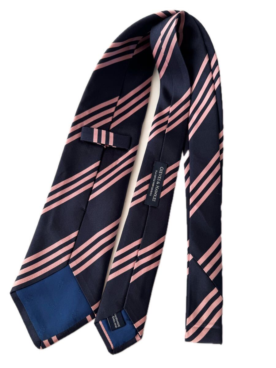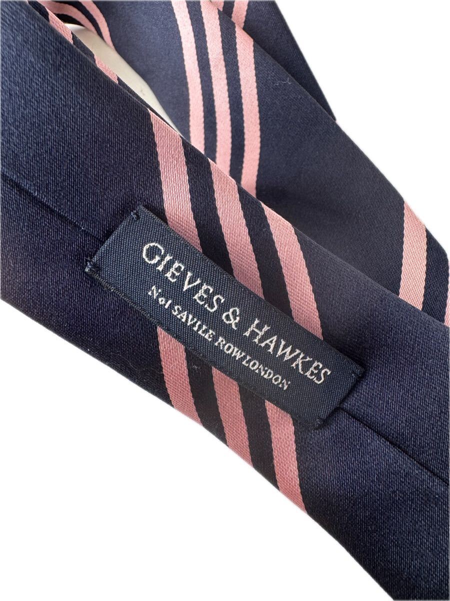 イングランド製 GIEVES&HAWKES シルクネクタイ ダークネイビー 濃紺 ピンク ギーブス&ホークス