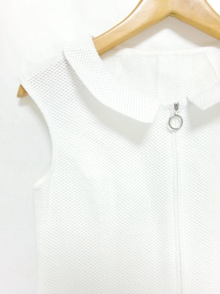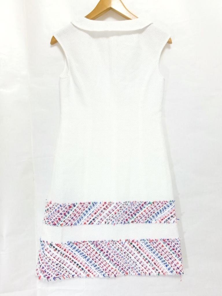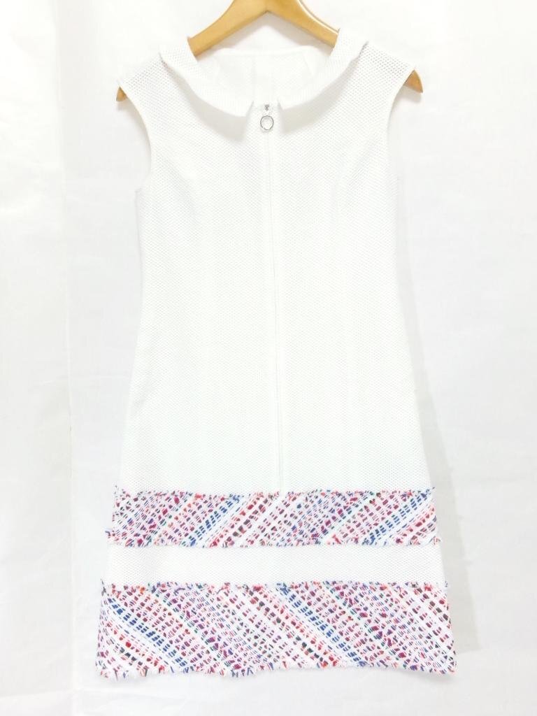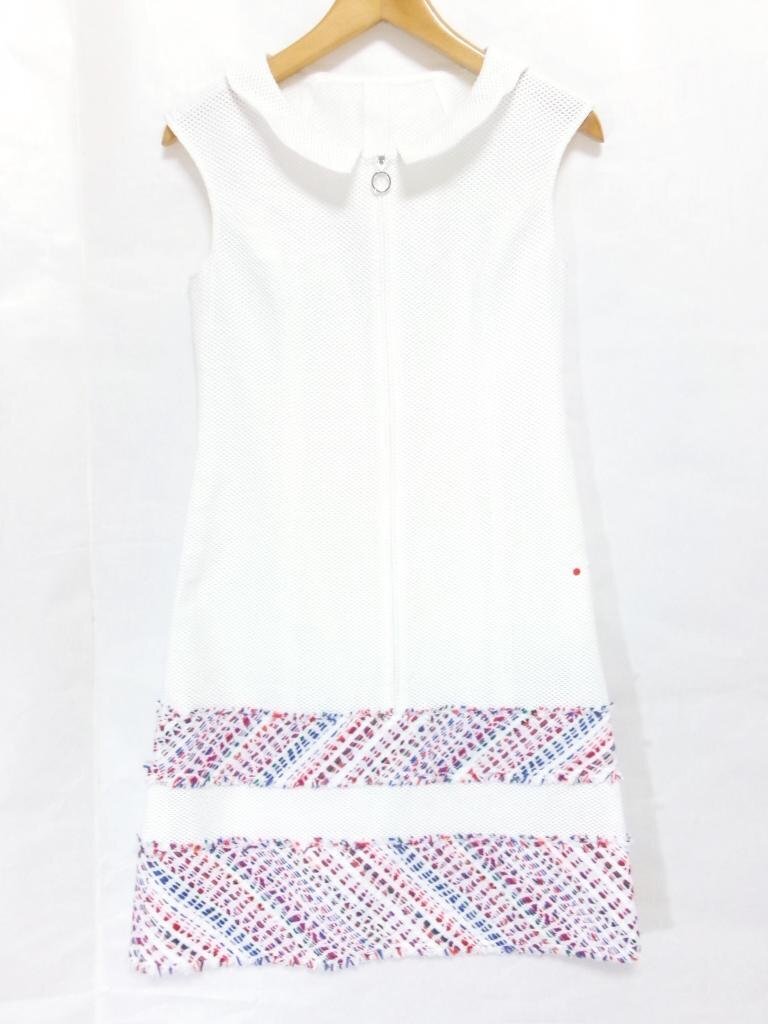 【送料込】 Rene ルネ ワンピース ホワイト 白 ノースリーブ メッシュ地 ツイードライン フロントジップ size32 XXS ハイブランド/972119