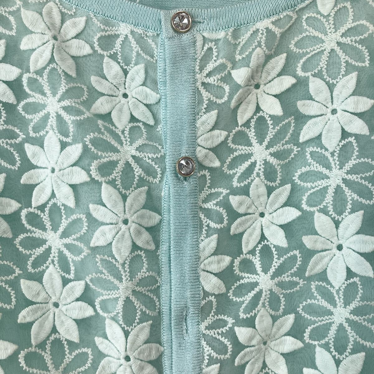 [訳あり]☆ROPE PICNIC ロペピクニック☆カーディガン ニット レース 刺繍 [38] M 長袖 レディース タイト グリーン系 [送料無料] n5841
