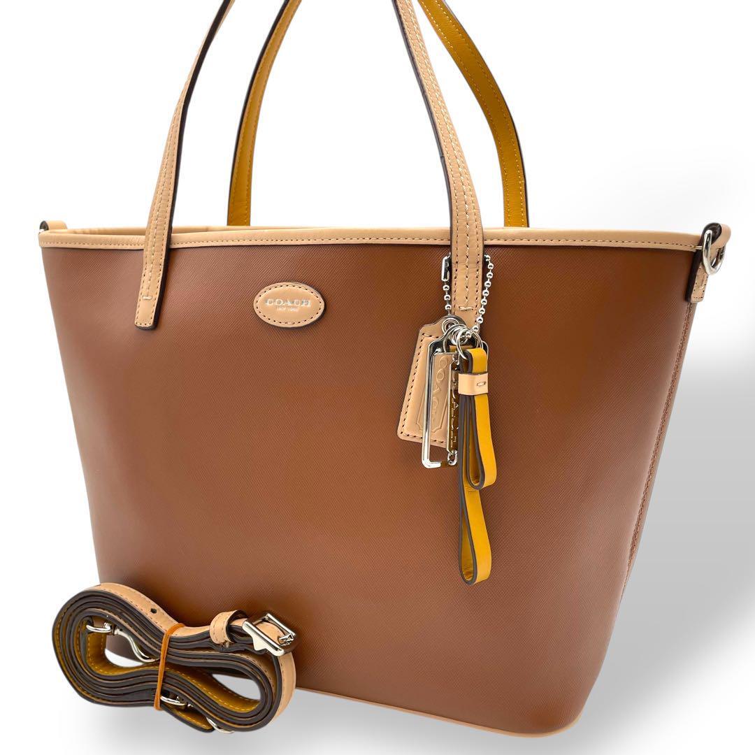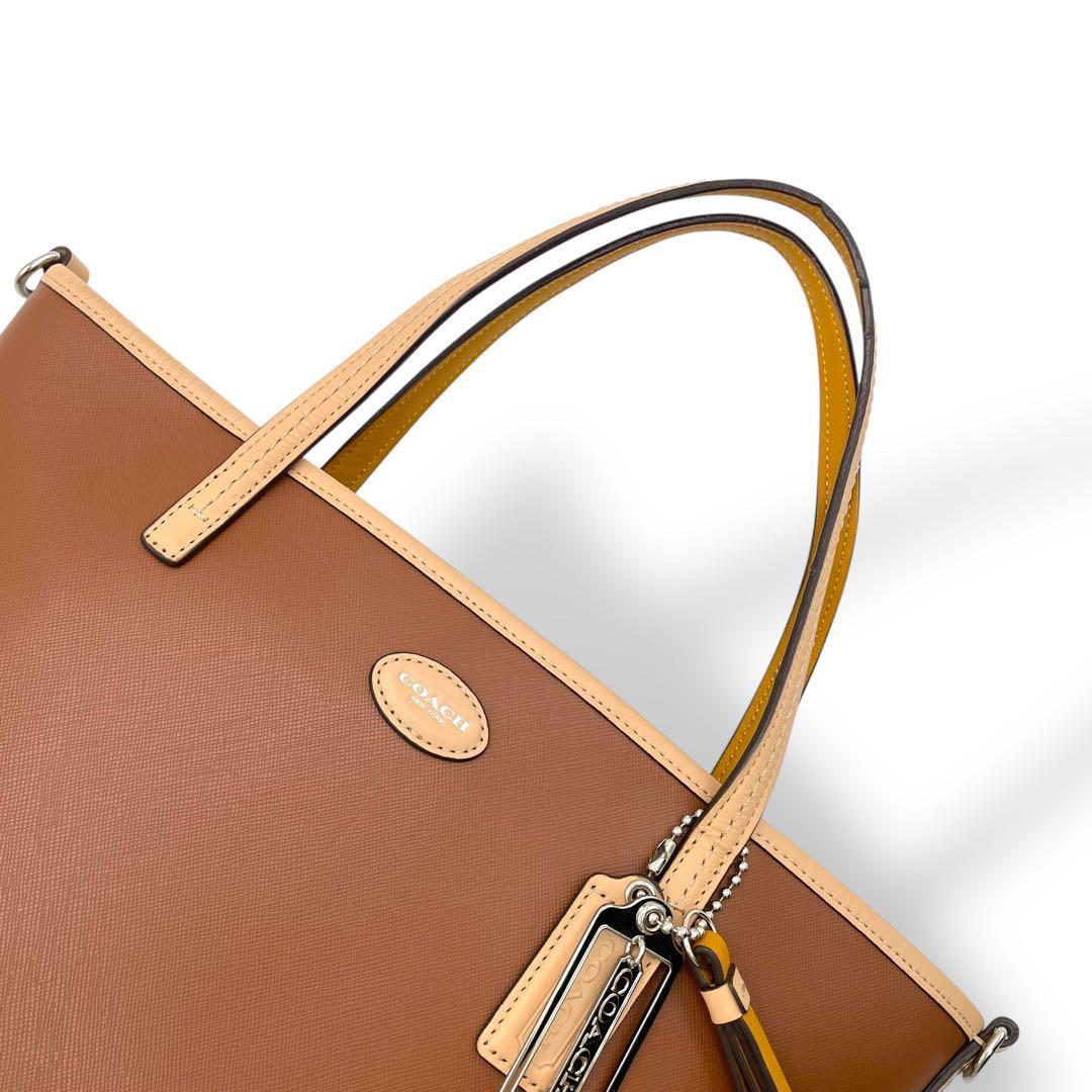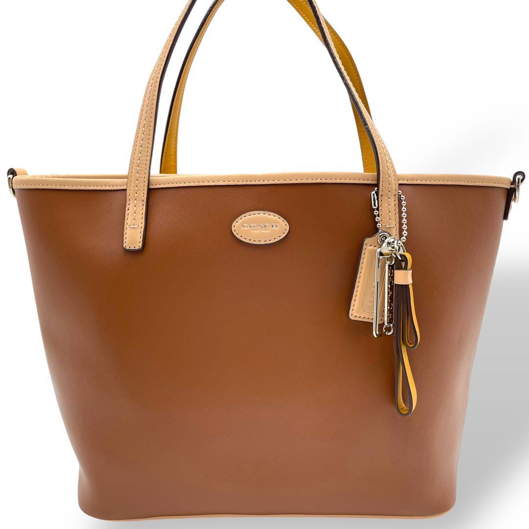 COACH トートバッグ PVCレザー ブラウン A4可 肩掛け F32462