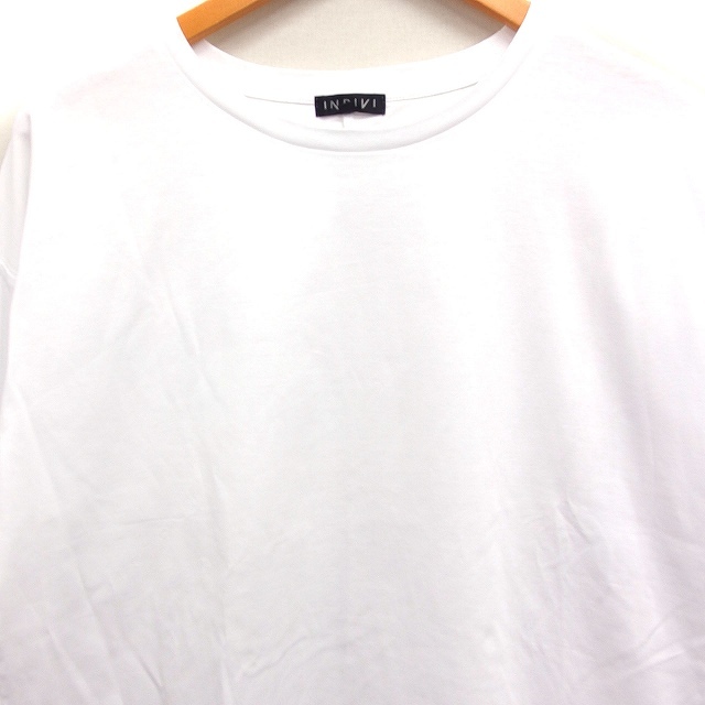インディヴィ INDIVI ロングスリーブ Tシャツ 丸首 ロンT ラウンドヘム 無地 コットン 綿 38 ホワイト 白 /FT19 レディース