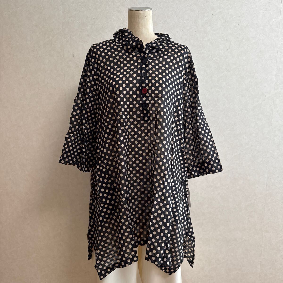 KN3042 ②*4L 大きいサイズ .チュニック個性的黒 薄手綿100%