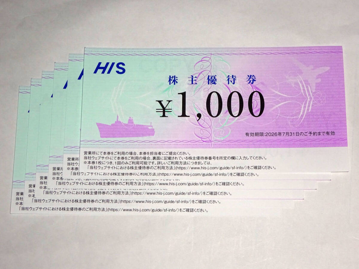 HIS株主優待券6000円分(1000円券×6枚) セットの出品です。