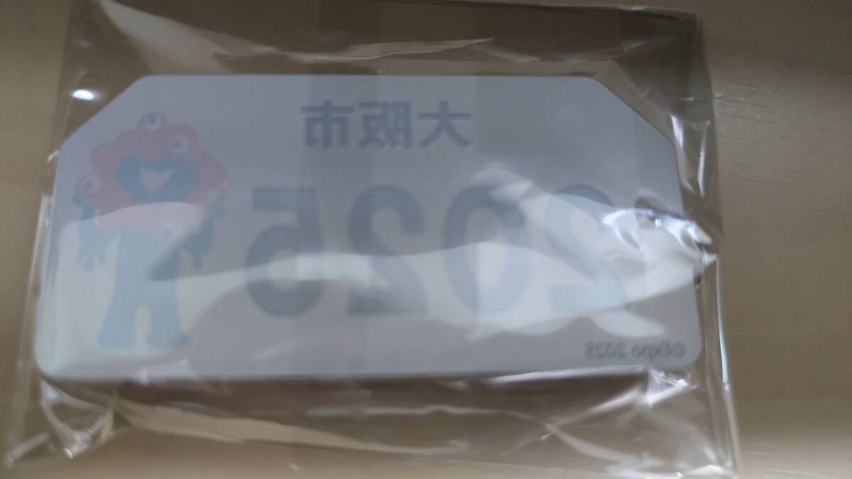 原動機付自転車の大阪・関西万博の図柄入りナンバー交付時に記念品として貰いました。