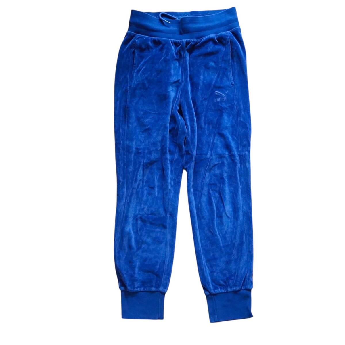J919@ PUMA ベロア調 イージーパンツ スウェットパンツ Mサイズ ジョガーシルエット ロゴ刺繍 ウエストゴム ドローコード