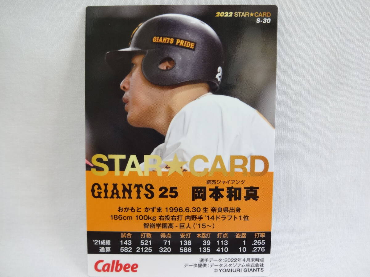 カルビー 2022 スターカード ゴールドサインパラレル版 S-30 読売ジャイアンツ 25 岡本 和真です。