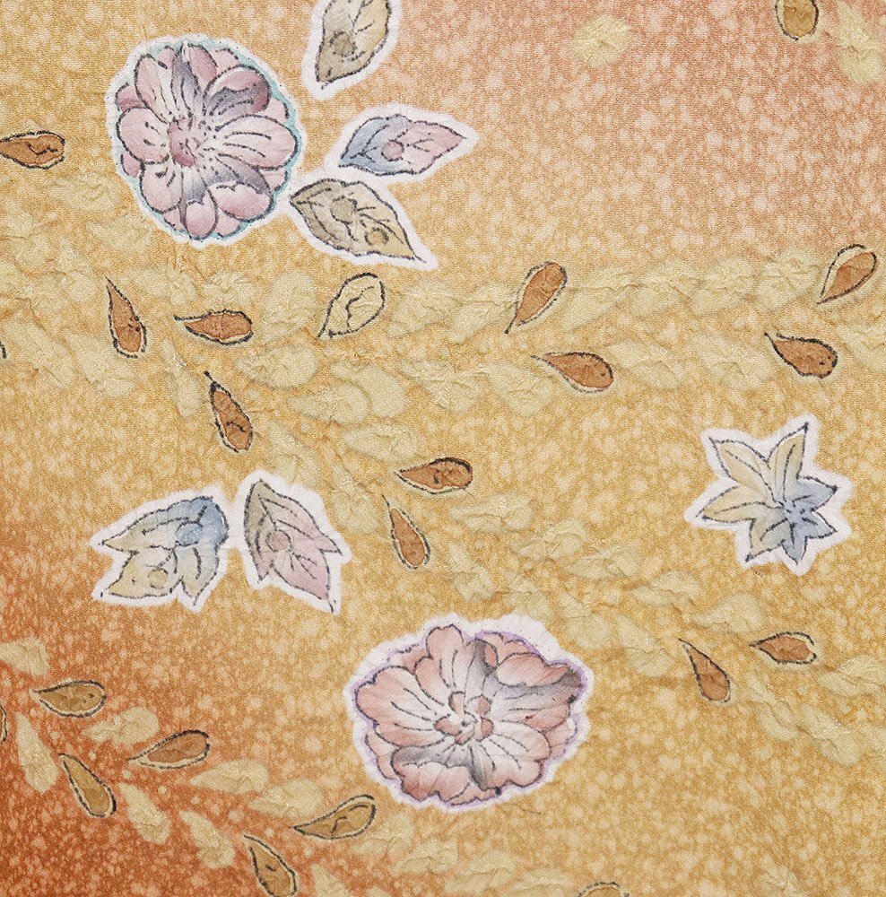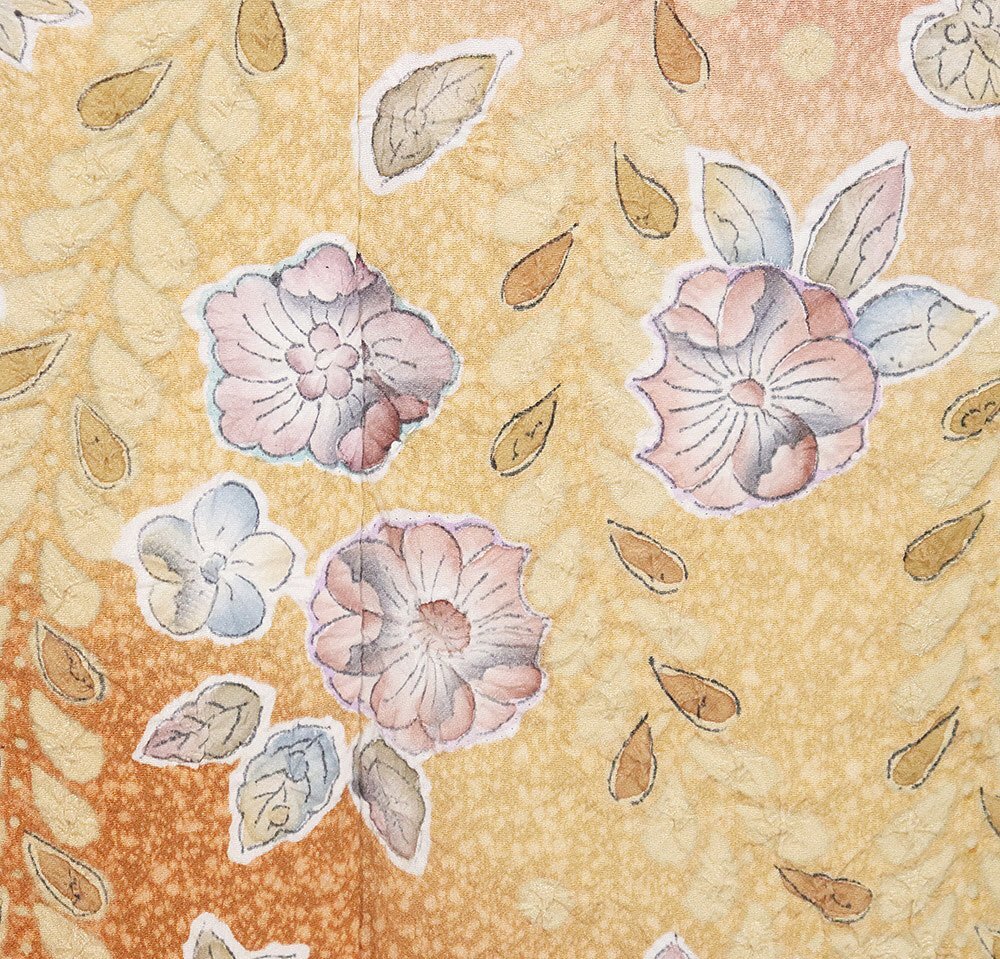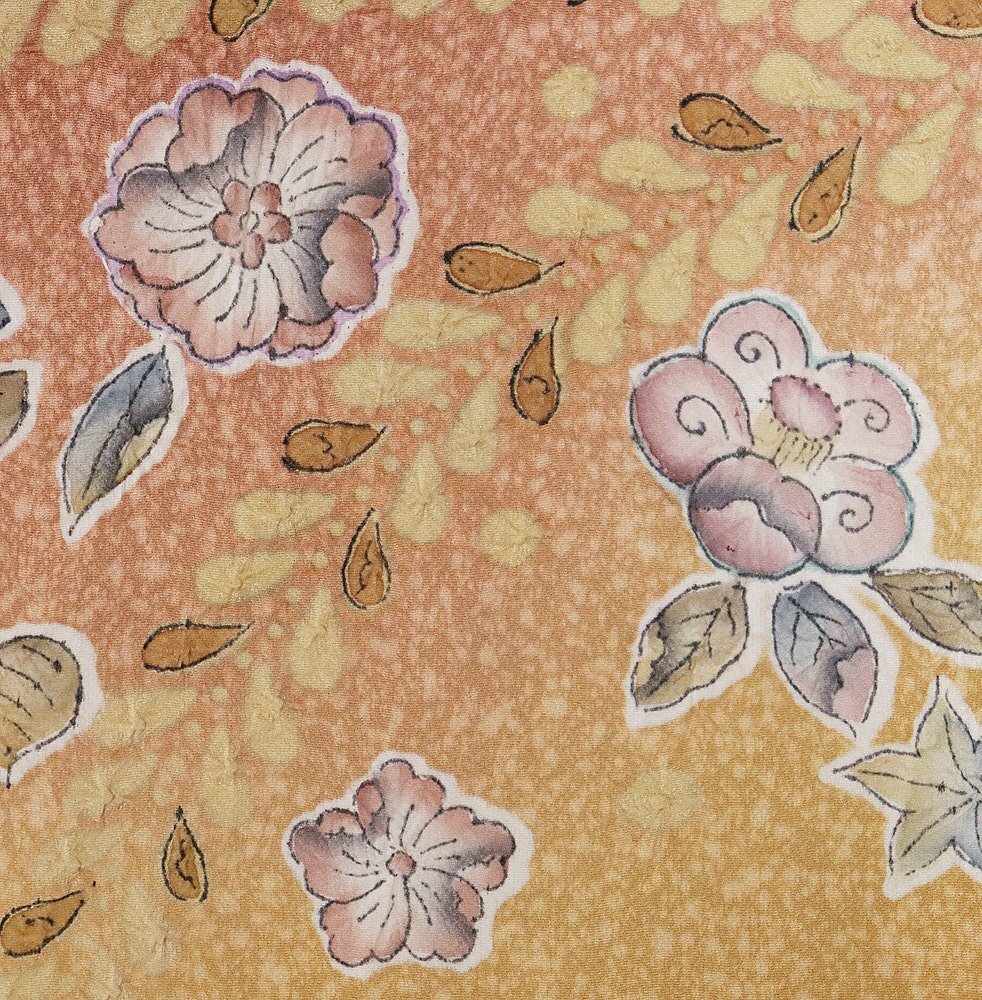 | 色・柄 | 辻が花訪問着 袷 丹後縮緬地 赤紫(銀朱色)・ピンク(肉色)・ オレンジ(杏色)・橙色(照柿色)・暈し地 絞り・辻が花 (写真では上手く色が出ない場合があります。ご了承下さい) |
