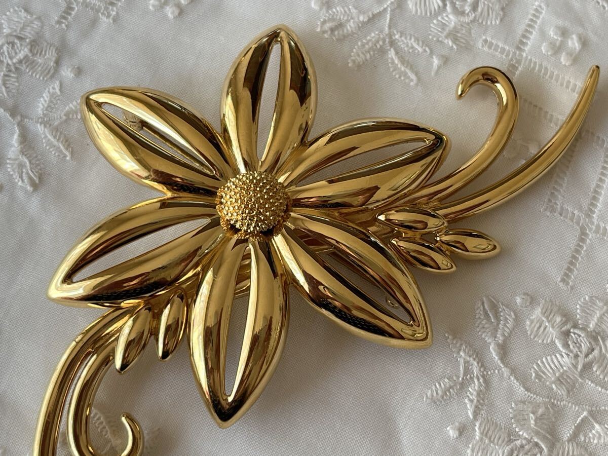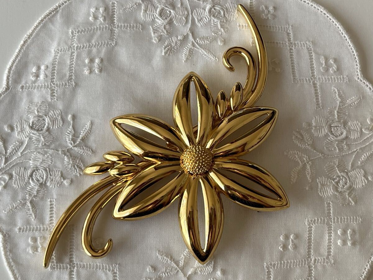 存在感のあるゴールドトーンのお花モチーフがとっても素敵なヴィンテージブローチです