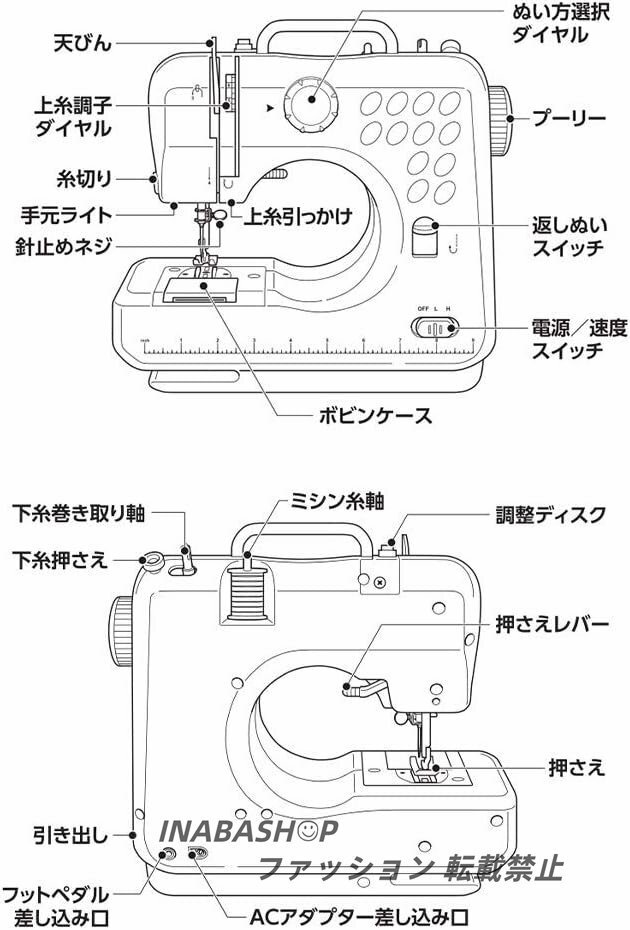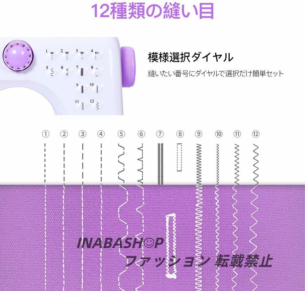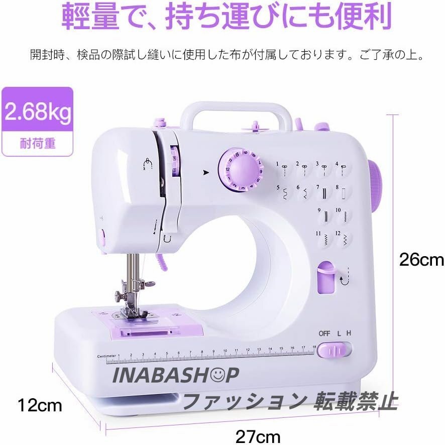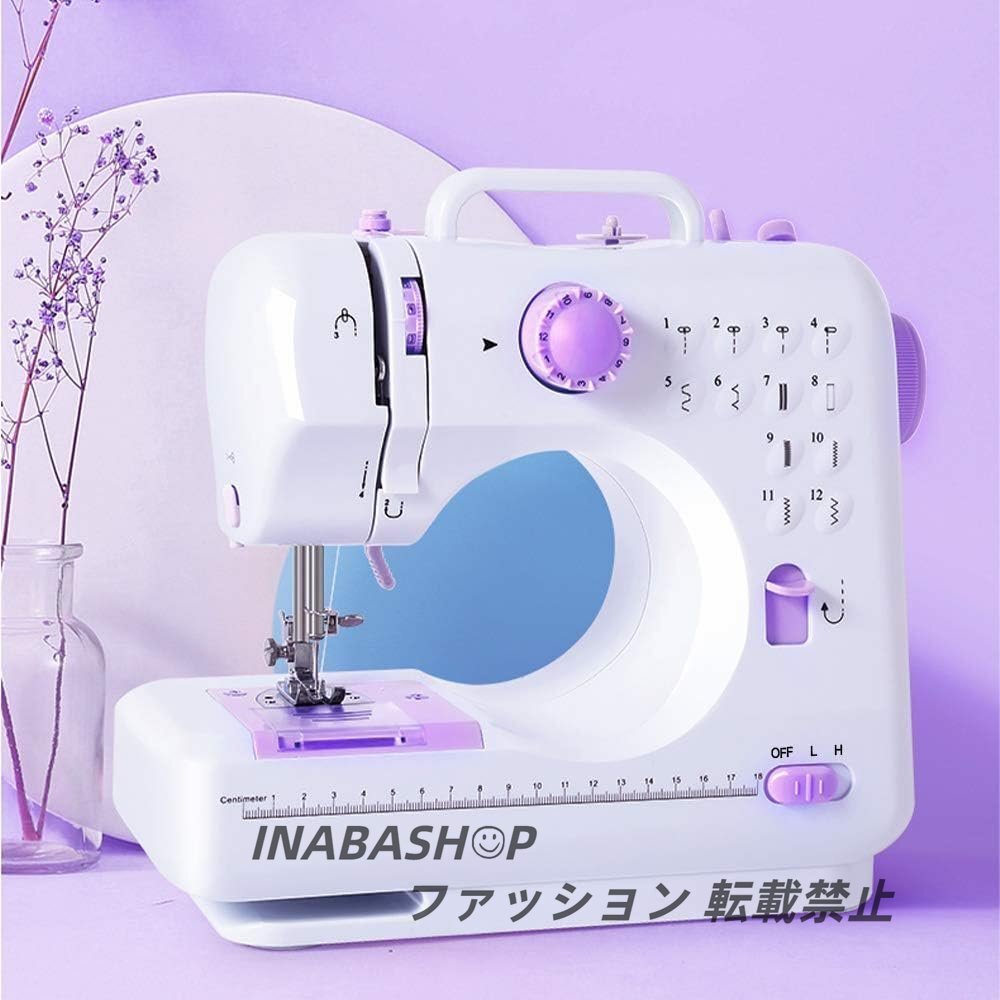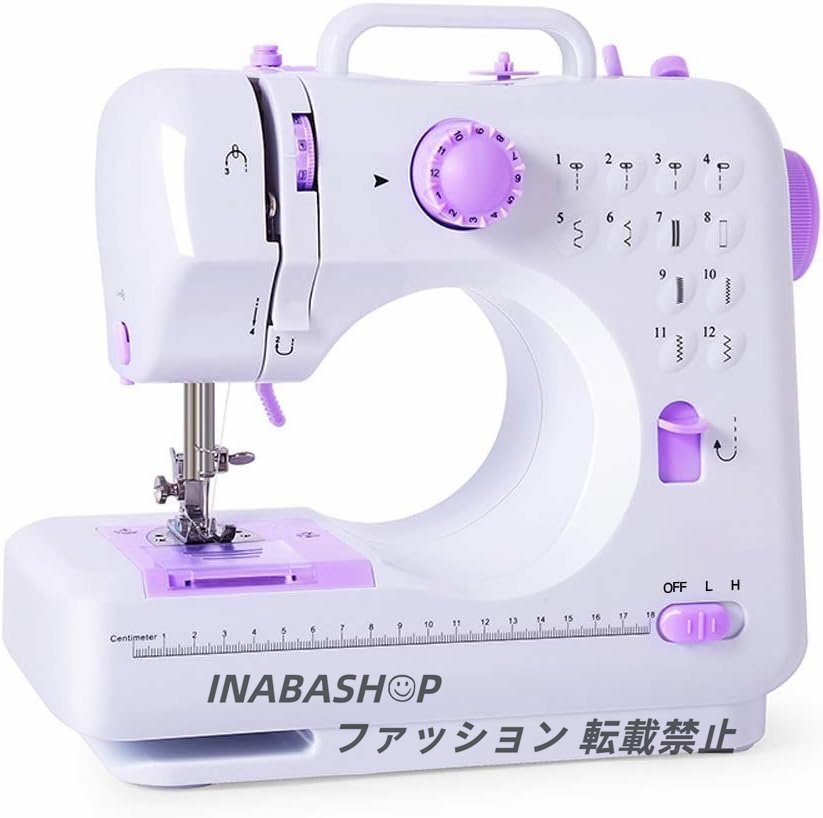 電動ミシン 家庭用ミシン 小型ミシン ライト付き 12種類の縫い目 返し縫い 2段階スピード ダブルスレッド 引き出し付き コンパクト 初心者