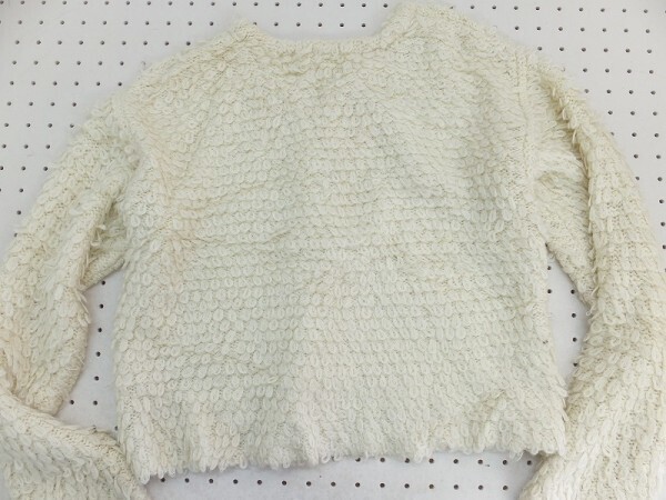 サイズはFで、着丈45cm、身幅49cm、袖丈57cm です。