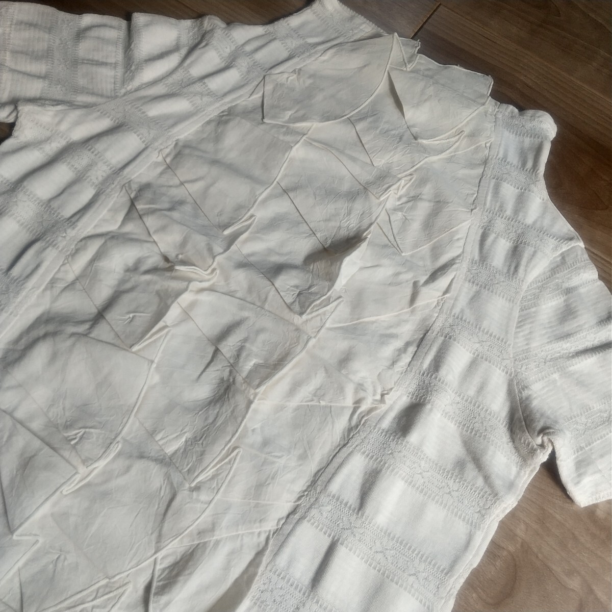 人と被らない個性的なデザインがお洒落で、着ると首元がくしゅっとして可愛いです。ボリュームのあるロングスカートと合わせると素敵だと思います。お好きな方いかがですか?