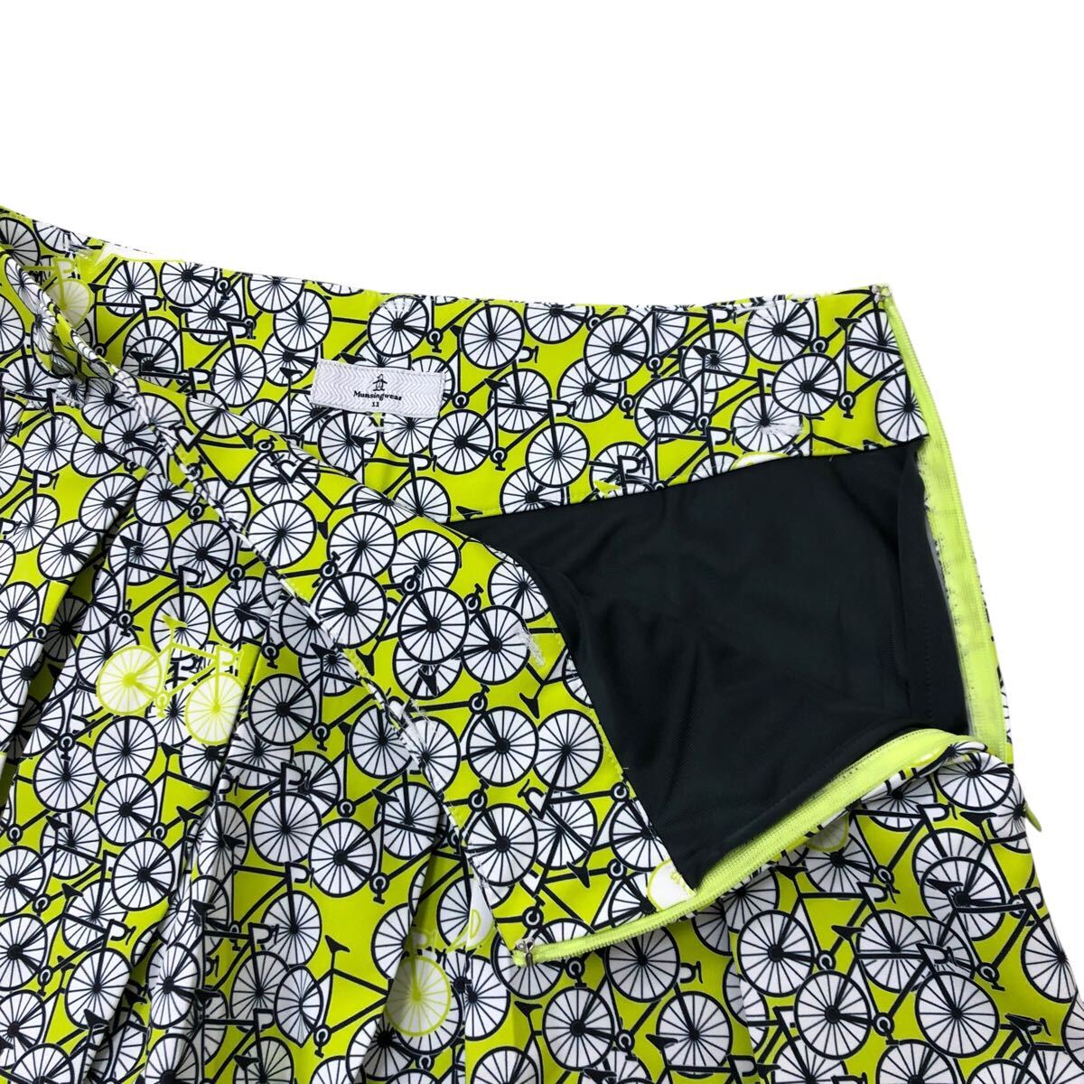 9NK001-3 美品 Munsingwear マンシングウェア スカートパンツ キュロット ミニ スカート プリーツ ボトムス 台形 自転車 柄 ライトグリーン レディース 11