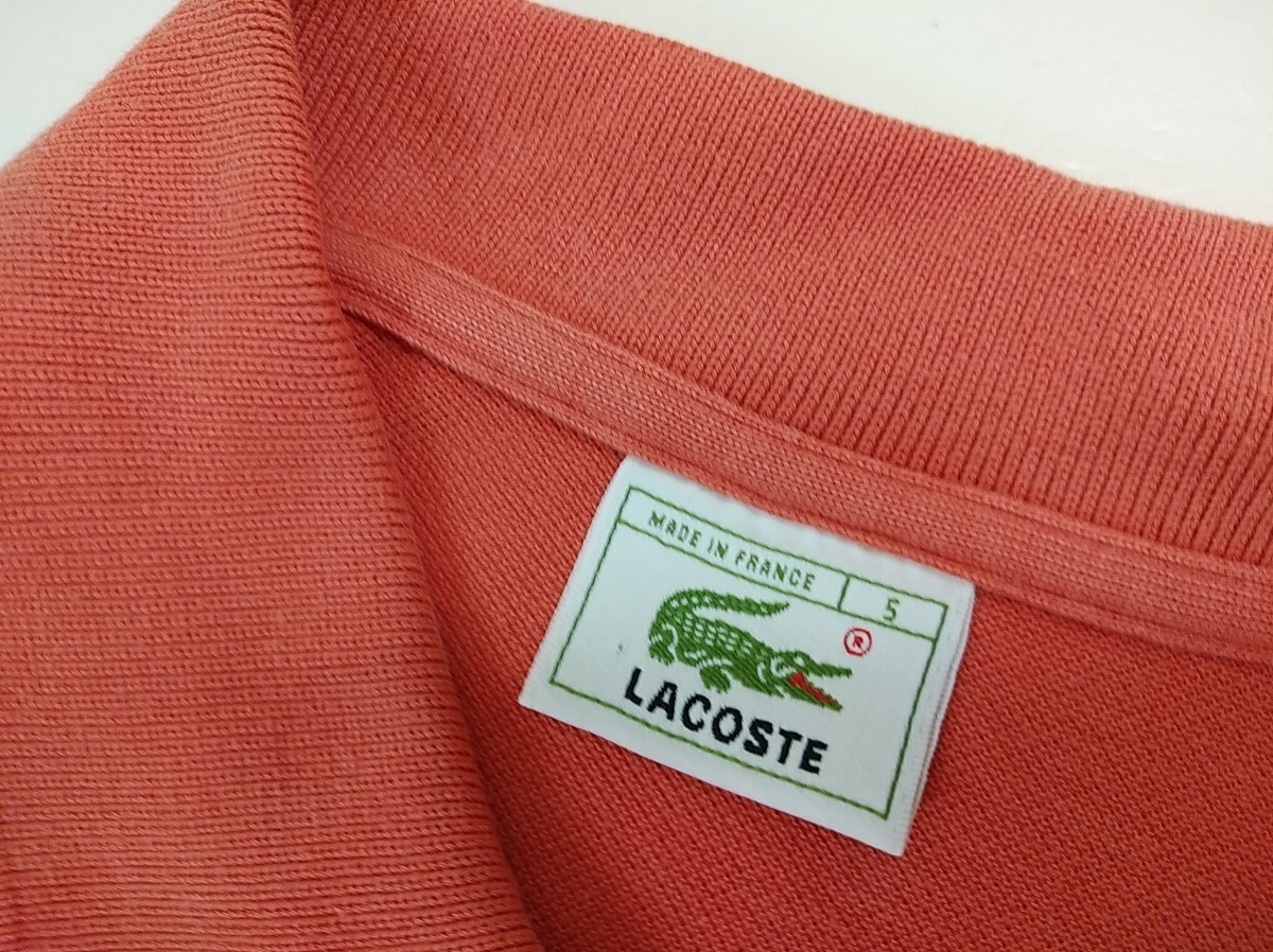 着用回数が少ない通常の古着程度★vintage★MADE IN FRANCE★LACOSTE★ラコステ★鹿の子 ポロシャツ★フレンチラコ オレンジ 5サイズ