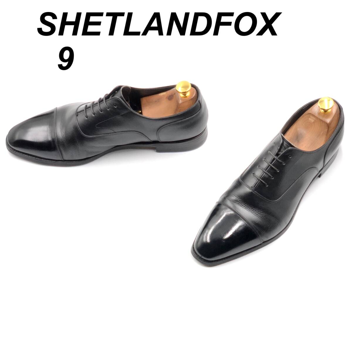即決 SHETLANDFOX シェットランドフォックス 27cm 9 041F メンズ レザーシューズ ストレートチップ 内羽根 黒 ブラック 革靴 皮靴 ビジネス