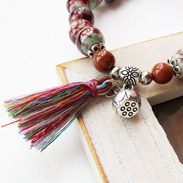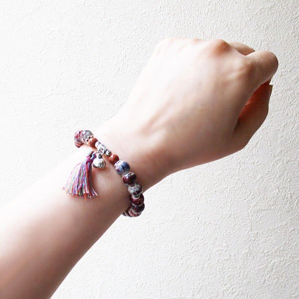 ”貴妃酔”と呼ばれるビーズが連なった、房付きブレスレットです。
