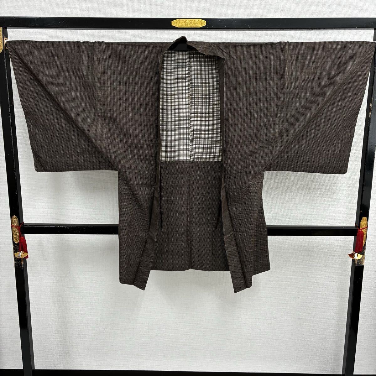 男羽織り 正絹 裄67 本場大島紬 茶泥染め kk-027