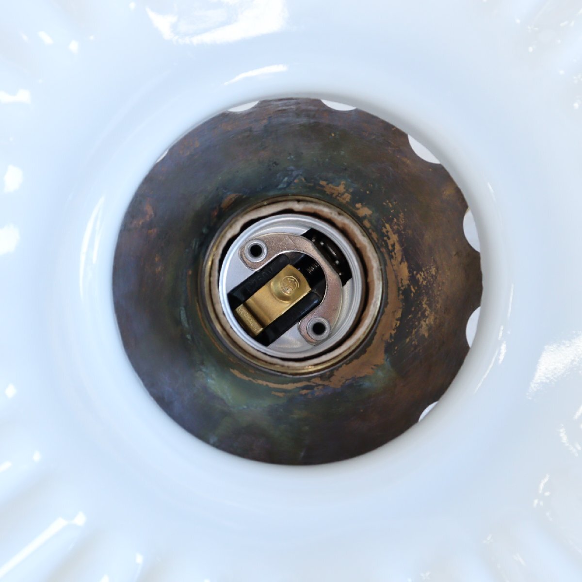 コンディション condition | ソケット、コード、シーリングは交換しています。 小キズ、細かい取れない汚れなど、経年による劣化があります。 詳細は画像をご覧ください。 ※当店は、アンティーク照明器具等を販売するにあたって、電気用品安全法第8条第1項(技術基準適合)を免除する例外承認制度により、経済産業省から承認を受けた事業者です。 技術基準適合に規定する検査と同様の検査を実施しておりますが、PSEマークや電気用品取締法に基づく表示が付されていない電気用品であり、十分な取扱注意が必要です。 ご理解いただいた上で、ご購入いただきますようお願い申し上げます。 |