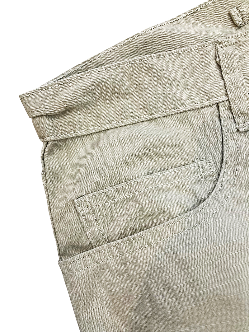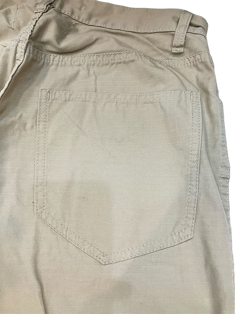 アウトドアやミリタリー物等で見る切り裂きに強いリップストップ生地で作られたパンツです。