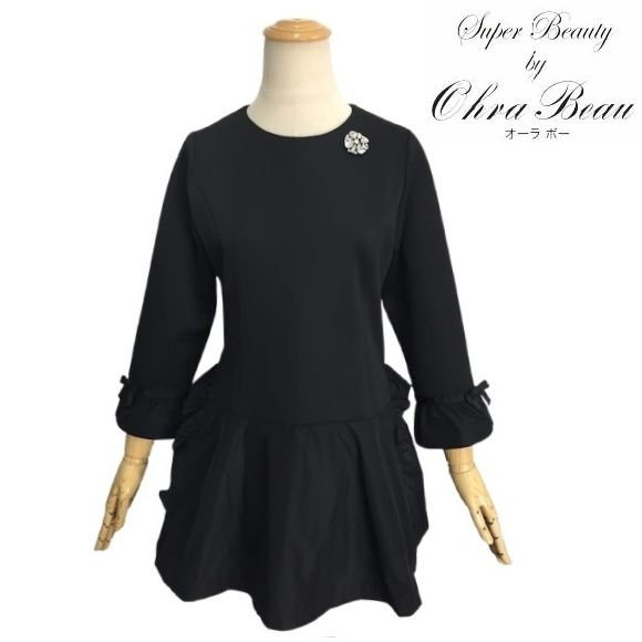 スーパービューティー 40 チュニック ウェスト切替 フリルデザイン 2512005 ブラック M 2025年春夏 オーラボー Super Beauty 大人かわいい