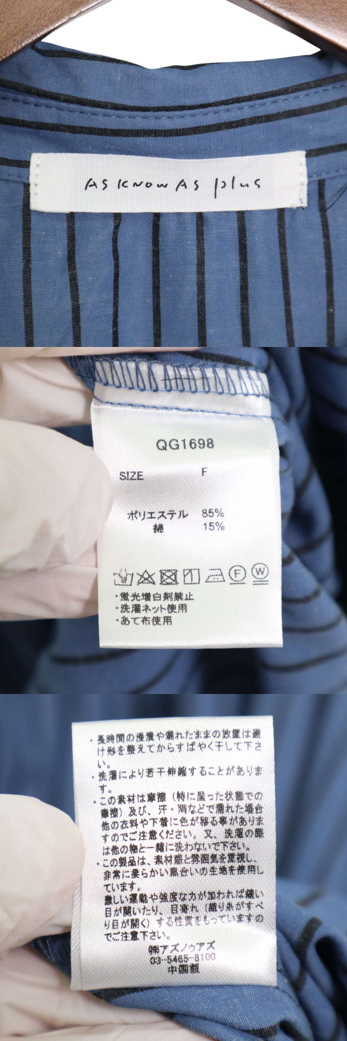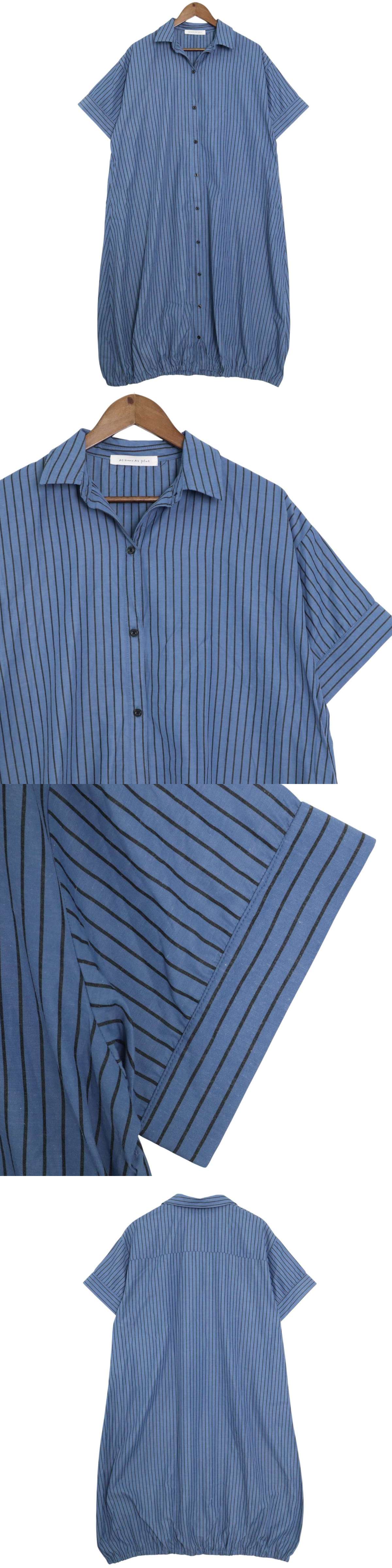 AS KNOW AS plus アズノゥアズ プラス 春夏★ 半袖 ストライプ シャツ ワンピース Sz.F レディース