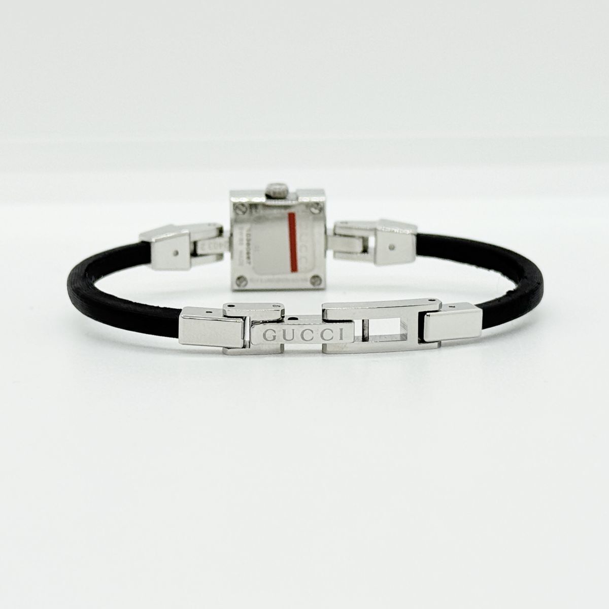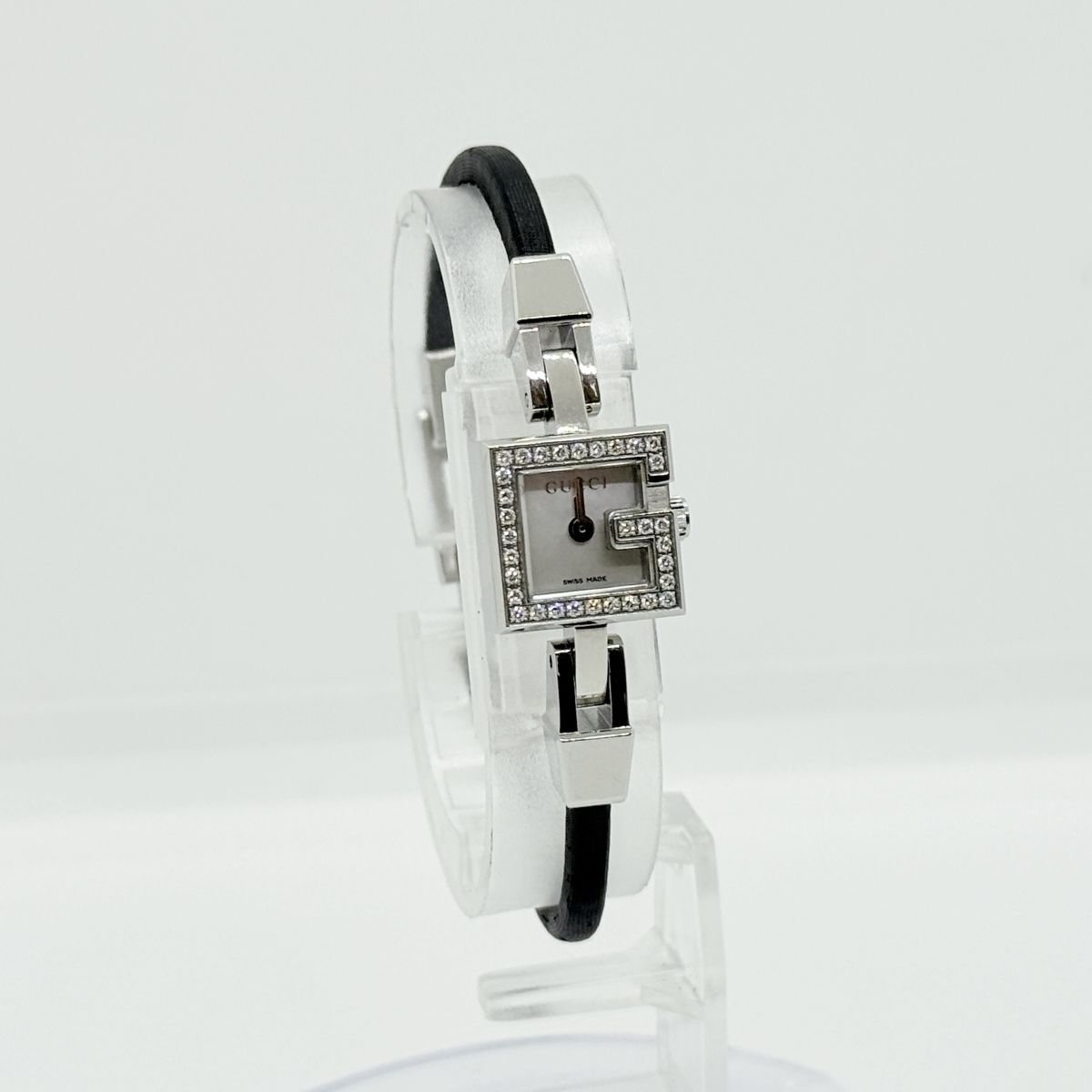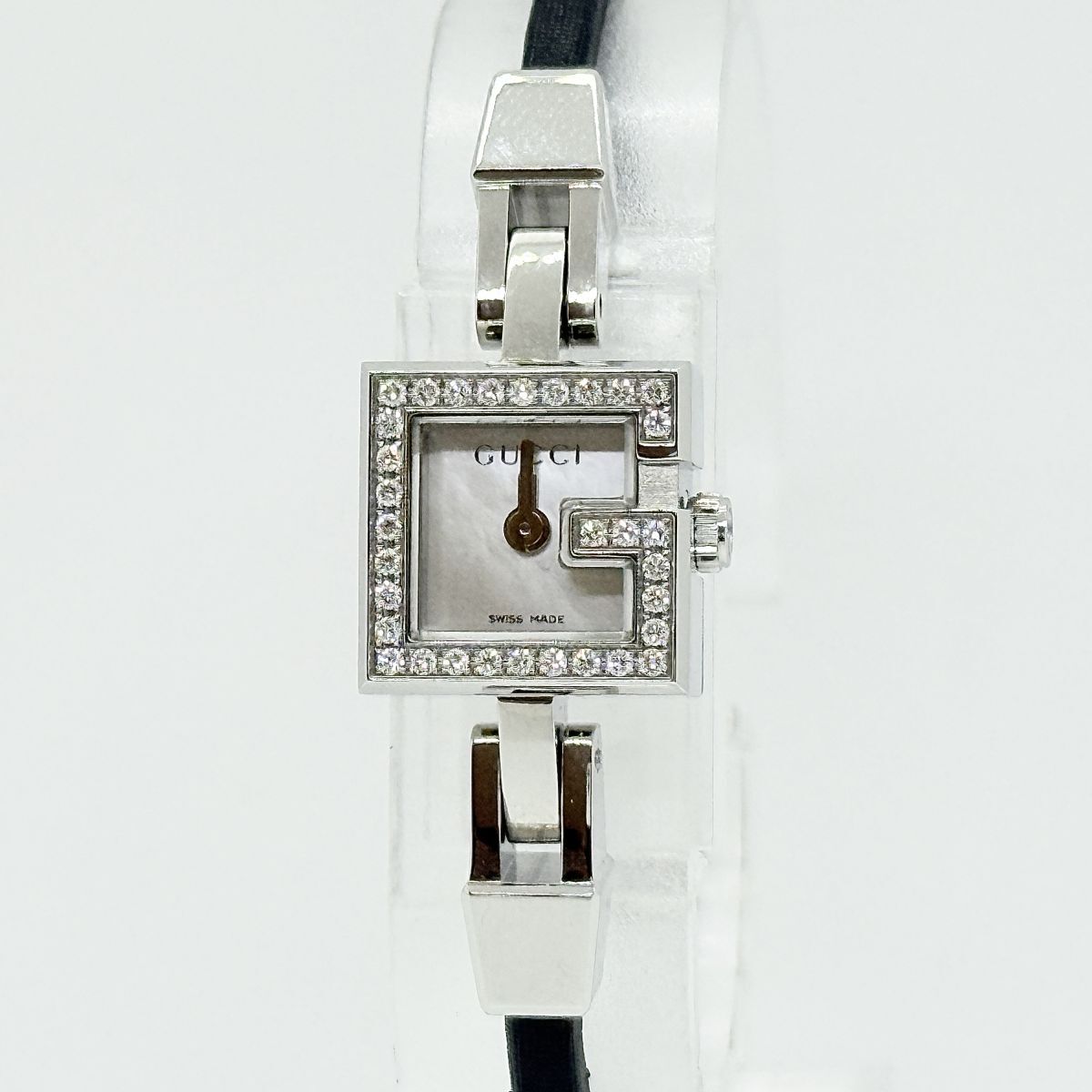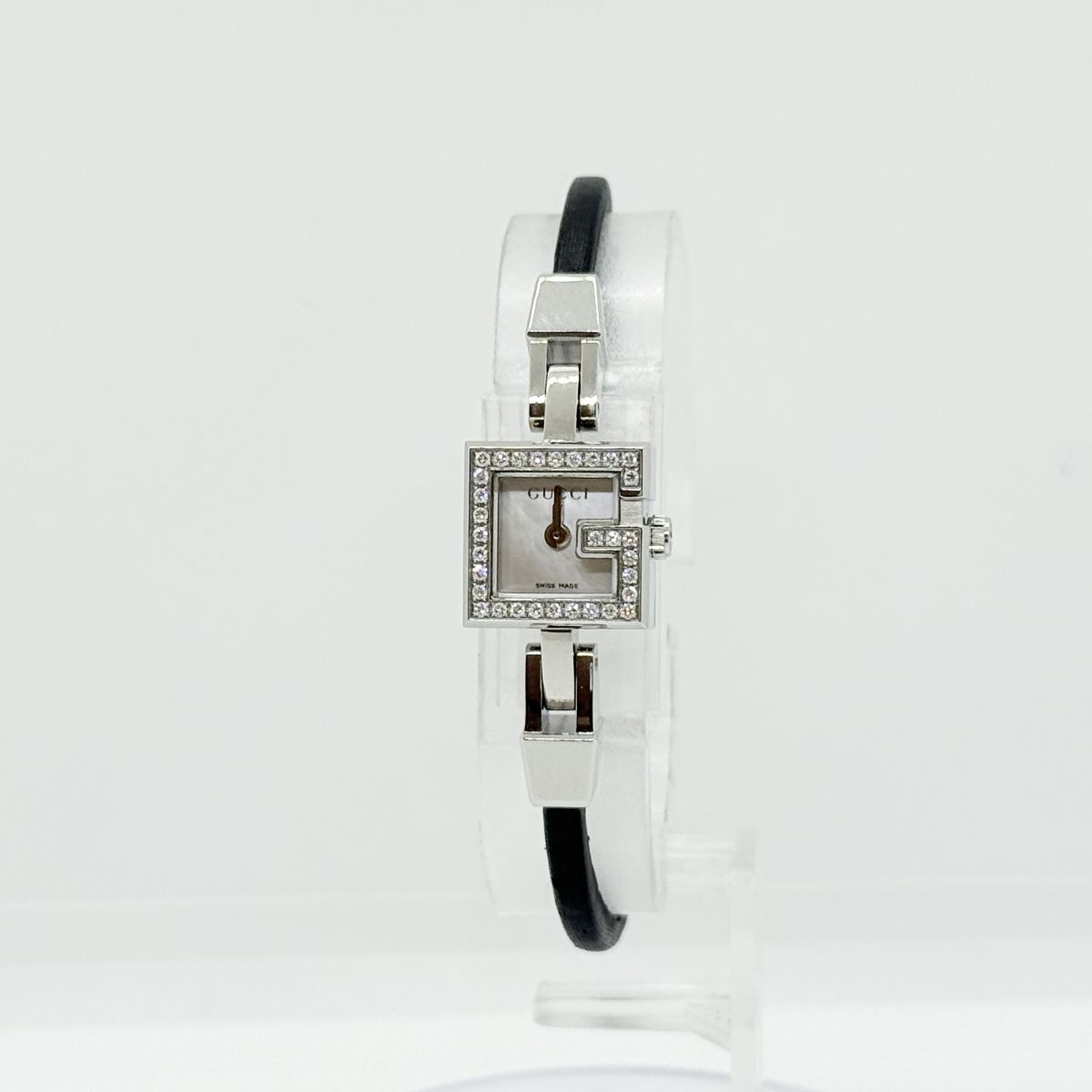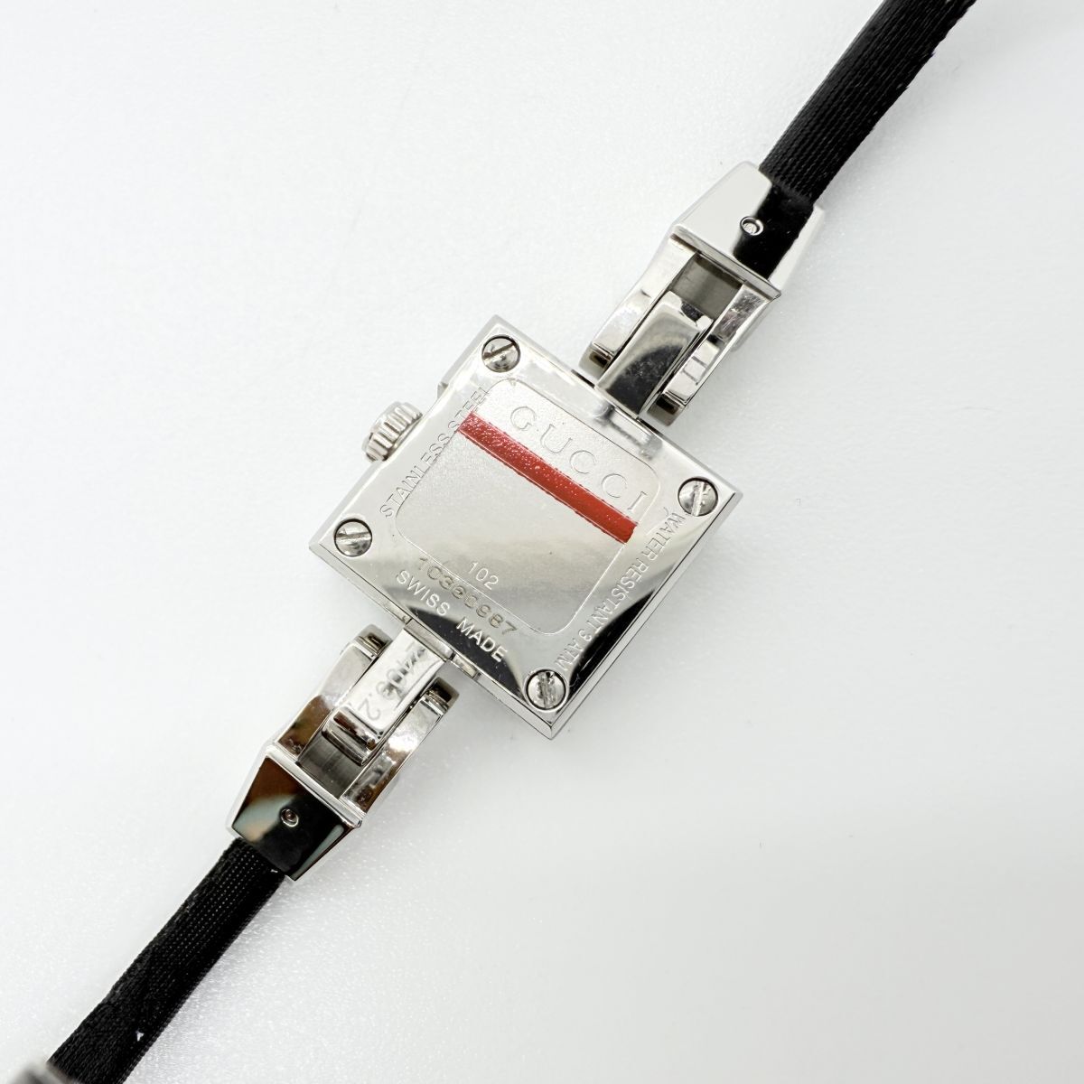 GUCCI グッチ バングルウォッチ 102 ダイヤベゼル SS×革 QZ 不動品 レディース 腕時計