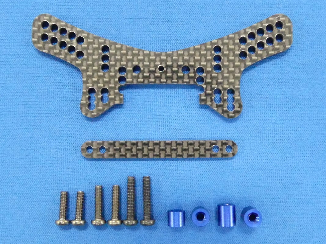 当社製のカーボンダンパーステーとの併用を推奨します。理由は穴位置の多さと本製品との干渉を防げる為です。(写真8、9枚目)