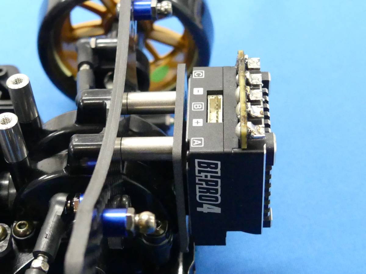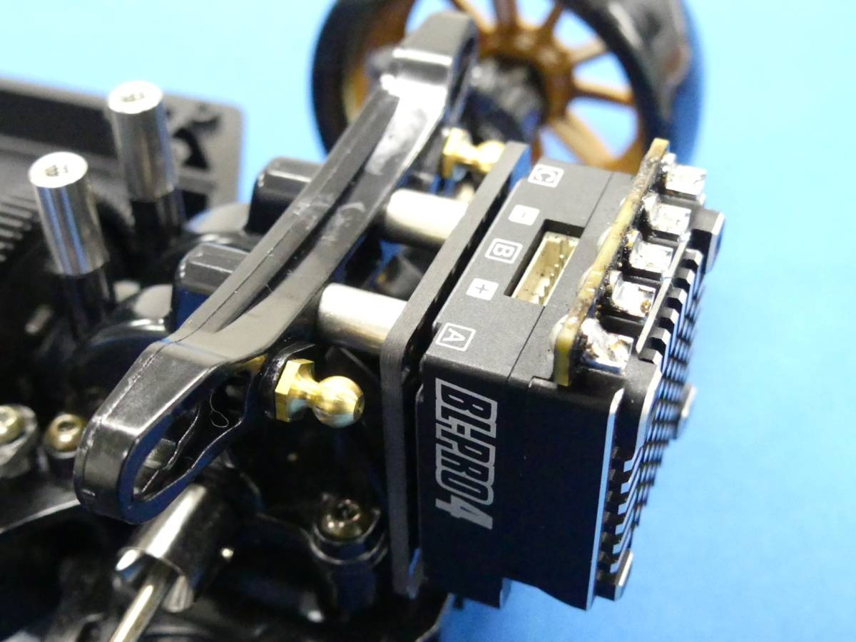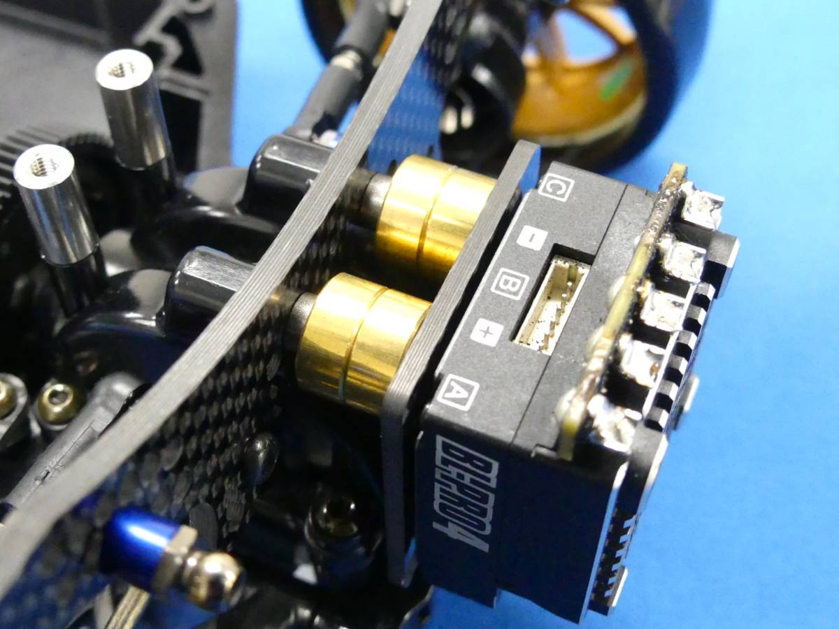 ミッションケースになるべく近く位置でESCを搭載すると、マシンの運動性が向上する事がテストで確認されています。