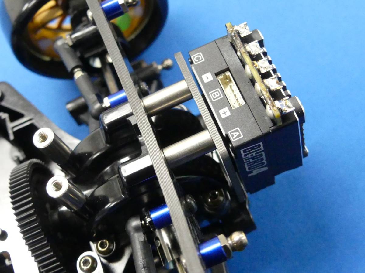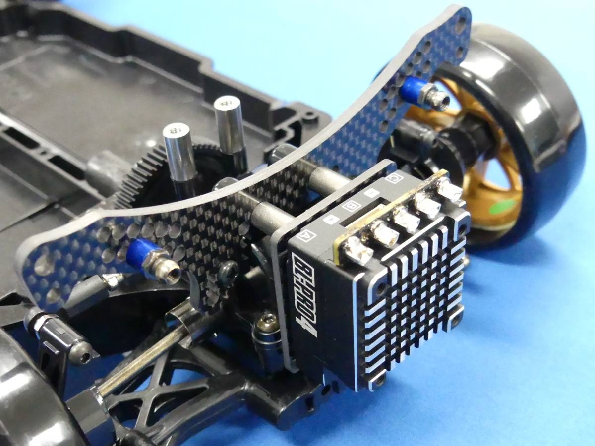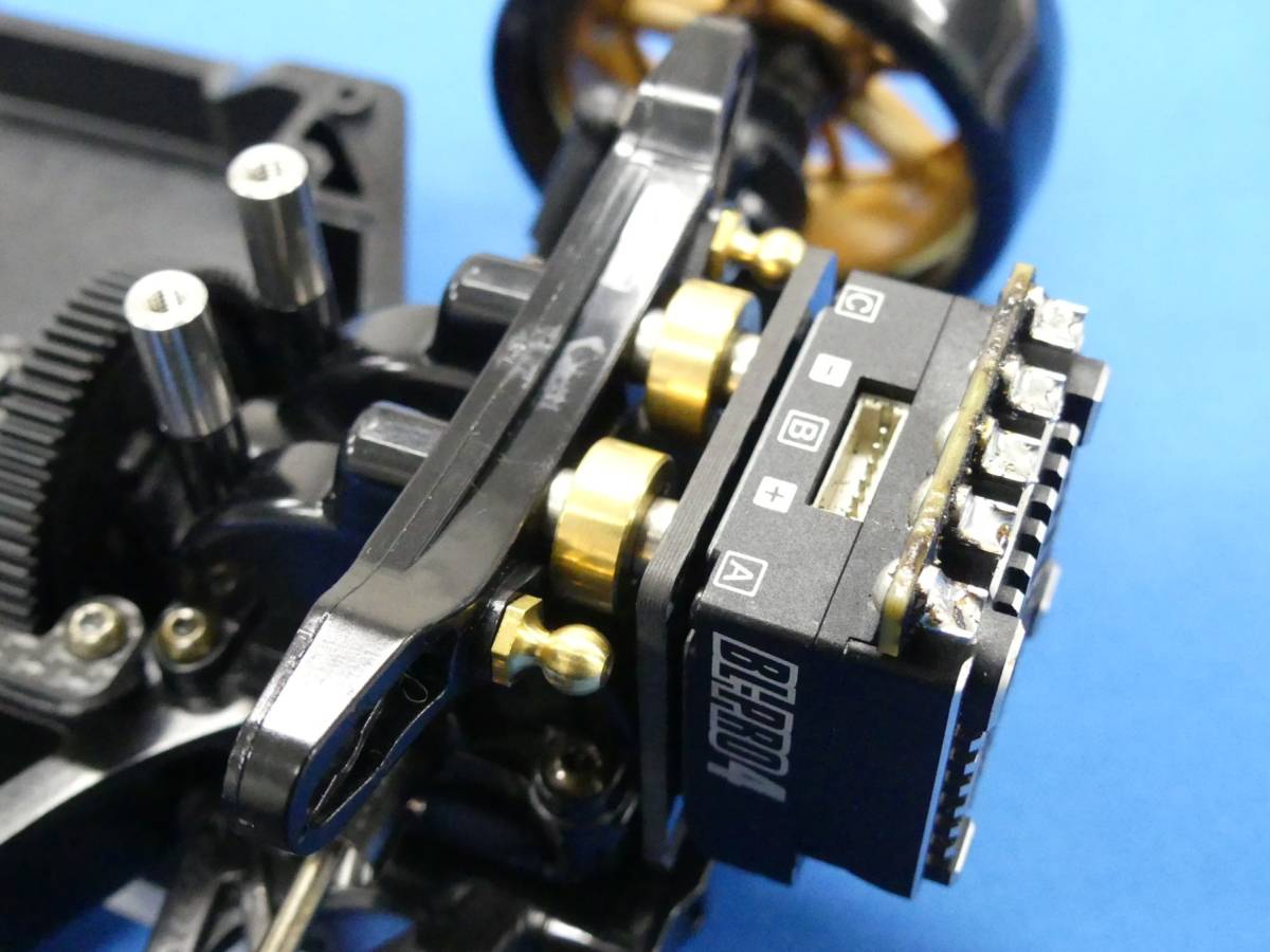 ミッションケースになるべく近く位置でESCを搭載すると、マシンの運動性が向上する事がテストで確認されています。