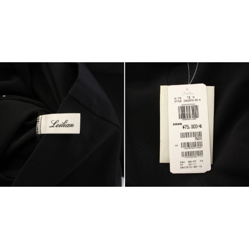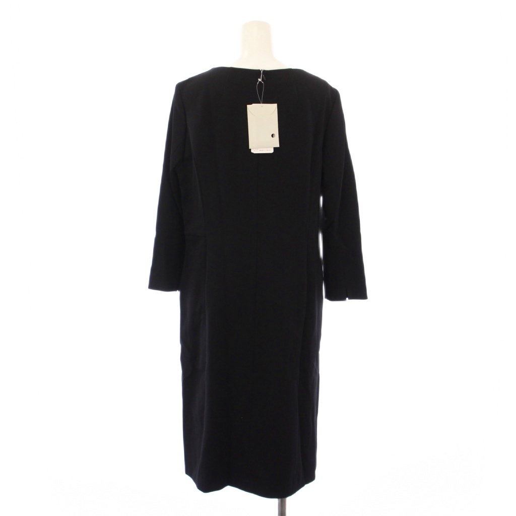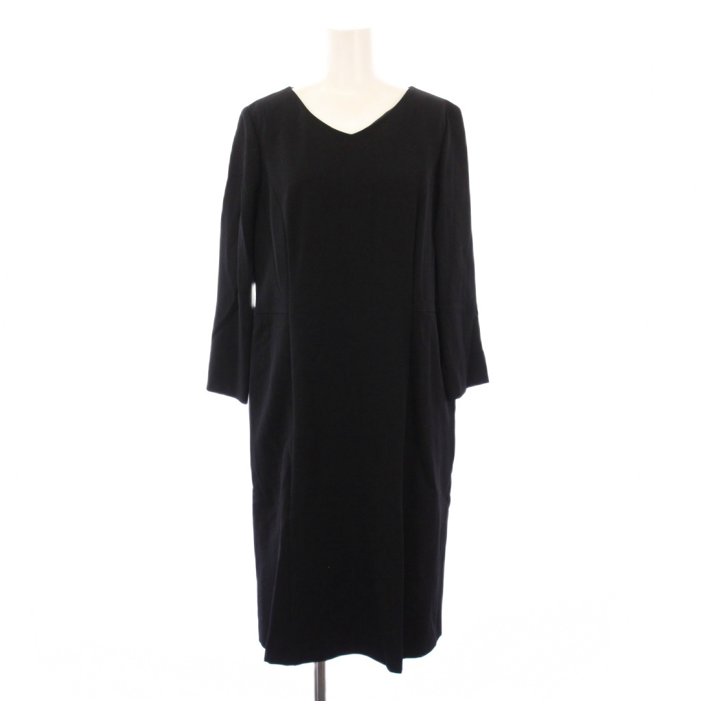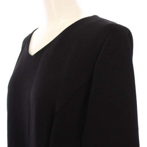 未使用品 レリアン Leilian ワンピース ひざ丈 長袖 Vネック ストレッチ 無地 ペチコート付き 13 黒 ブラック タグ付き /BB レディース