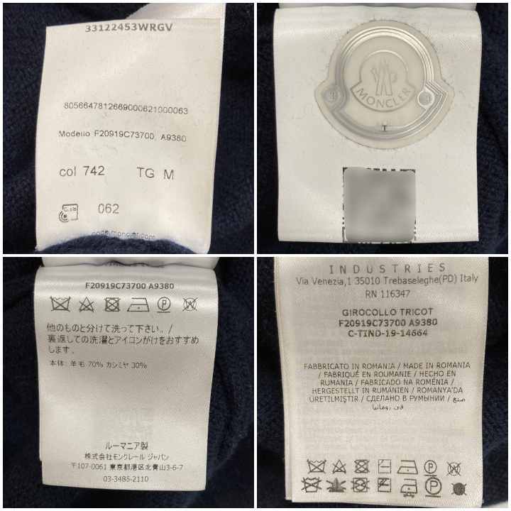 720914-8 MONCLER/モンクレール ニット GIROCOLLO TRICOT ネイビー系 ミックスカシミヤ SIZE M メンズ ファッション F20919C73700A9380