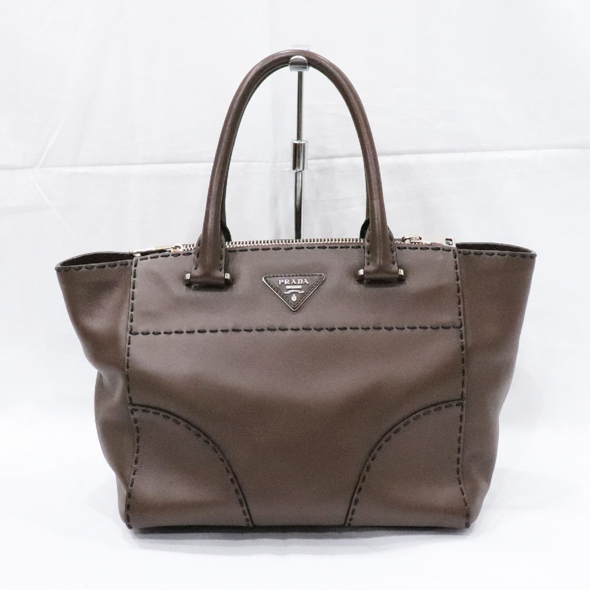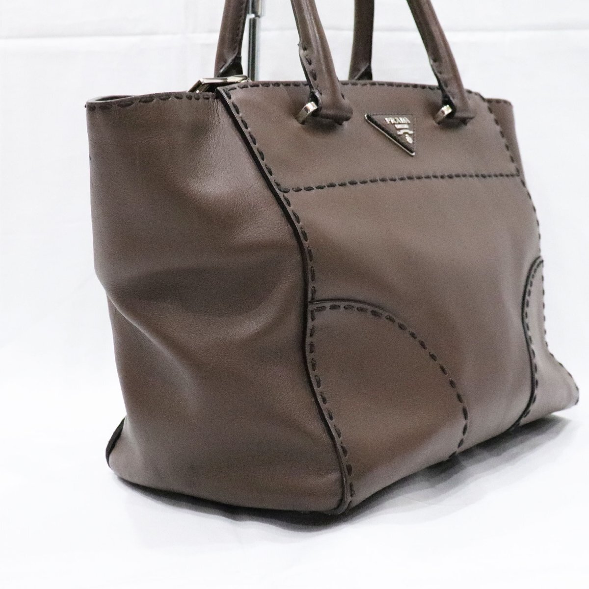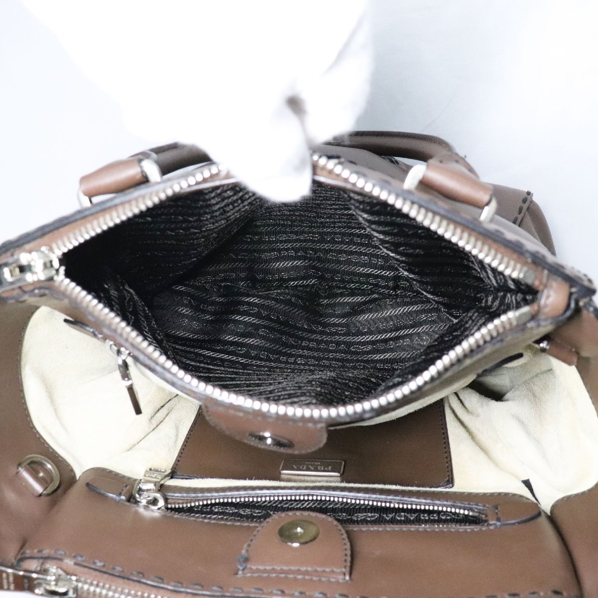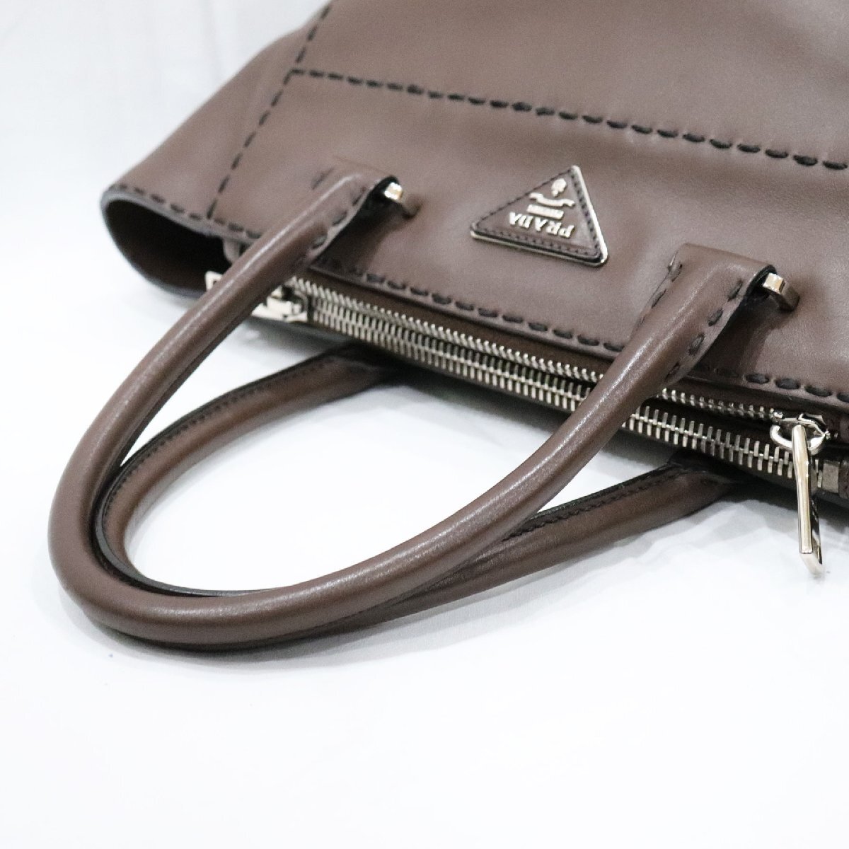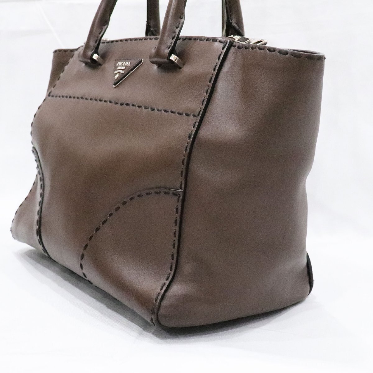 PRADA プラダ シティカーフ ハンドバッグ ダークブラウン レザー B2861K 2way bag 中古 良品 送料無料!!