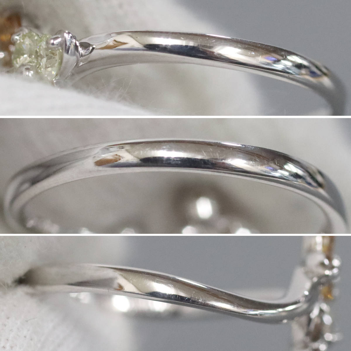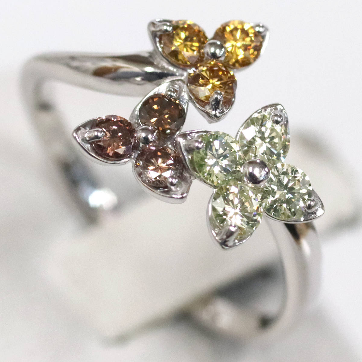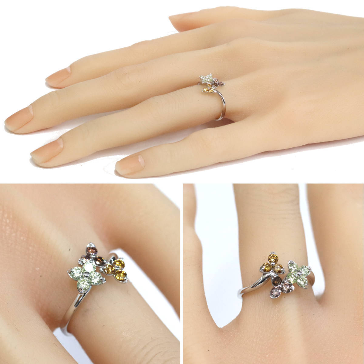 | K18WGマルチカラーダイヤモンドリングの中古品です。 鑑別書が付属します。 天然ダイヤモンドと鑑別されていますが、色の起源は不明です。 ダイヤモンドはわずかにインクルージョンがありますが、肉眼では見えません。 ダイヤモンドの表面には部分的に天然の欠けがあります。 ダイヤモンドは照りよく輝きます。 地金にはわずかに小傷があります。