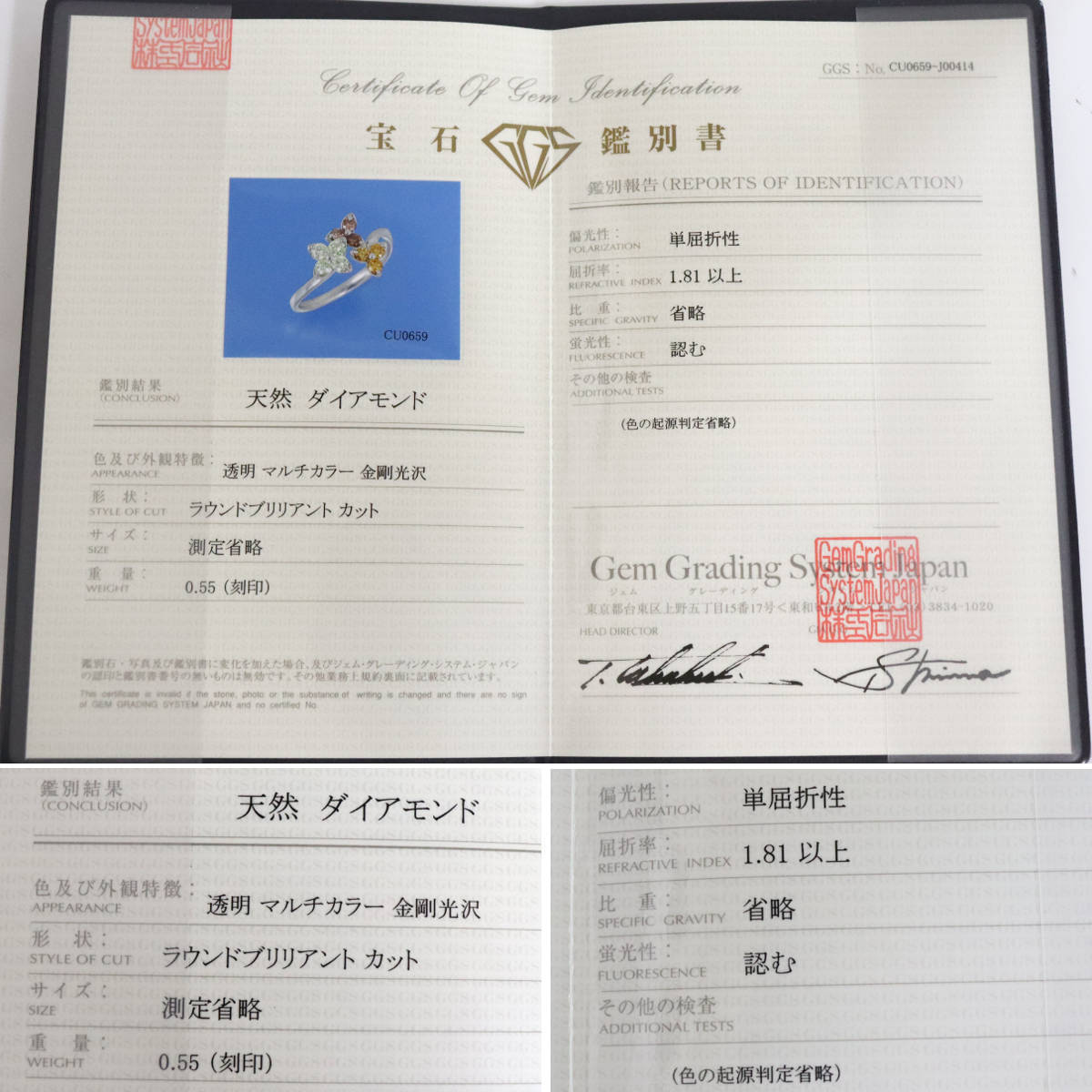 | ■ K18WGマルチカラーダイヤモンドリング D0.55 2.7g #11 鑑別書 ■ | ||||||||||||||||||||||||||