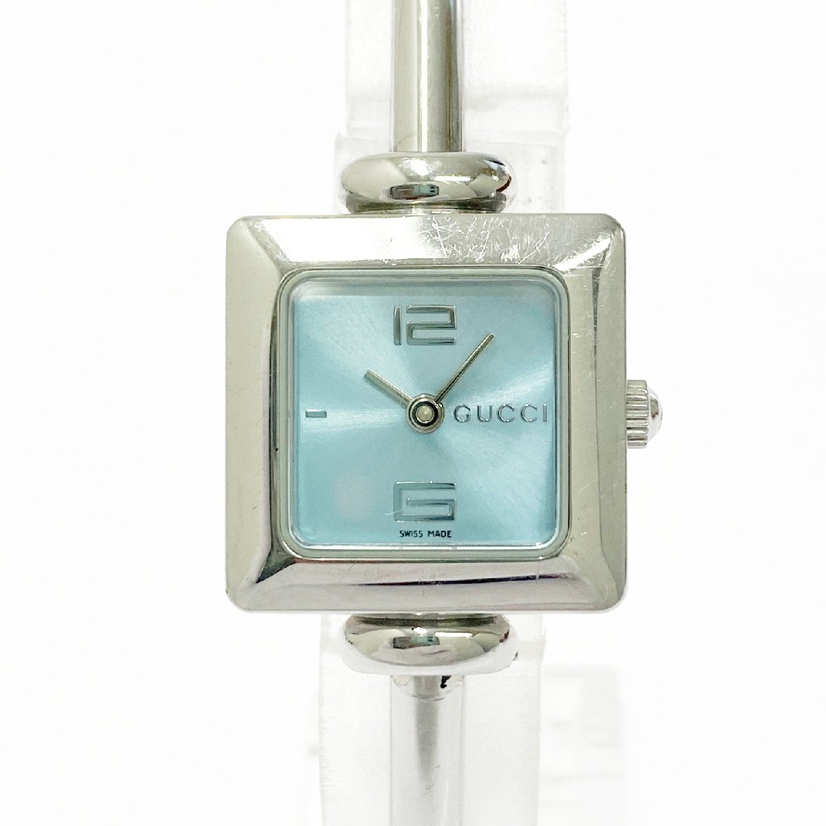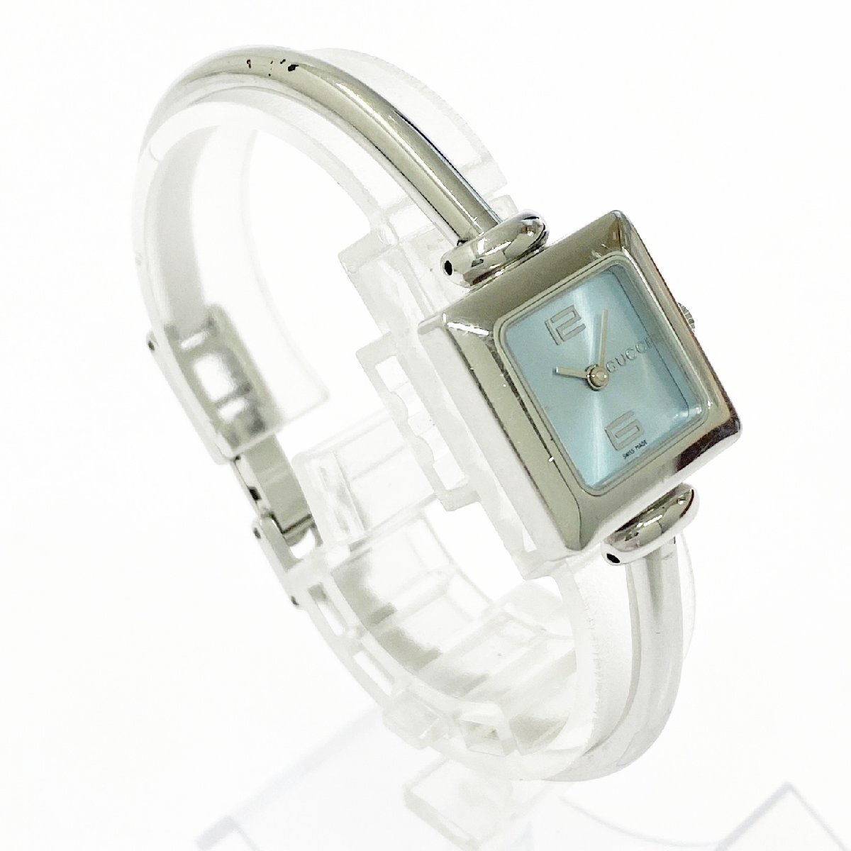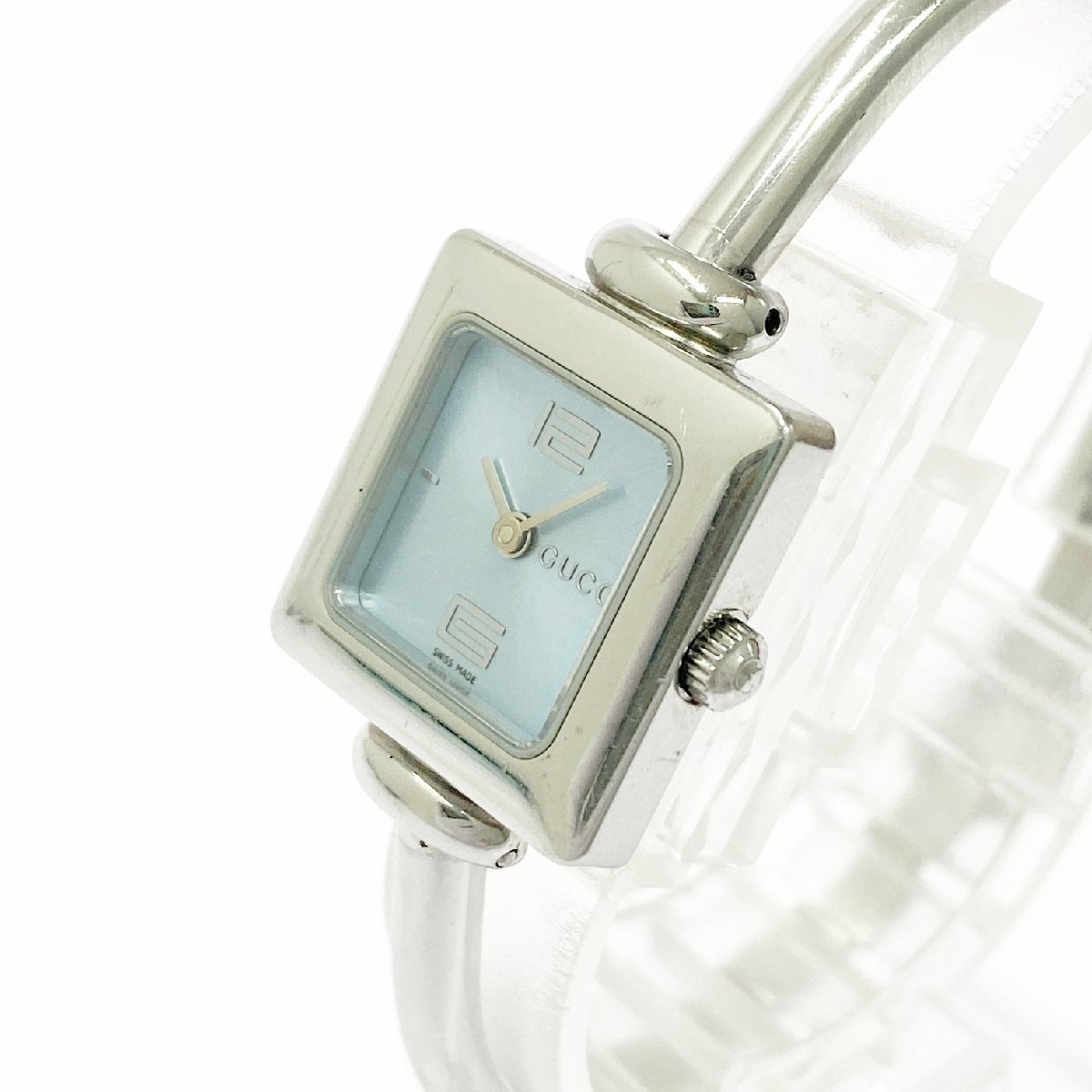 【1円スタート】GUCCI グッチ 1900L バングルウォッチ スクエア SS ブルー系文字盤 クオーツ レディース腕時計 477869