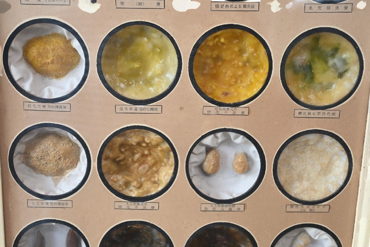 主に赤ちゃんの便を様々なパターンで模型にしてあります