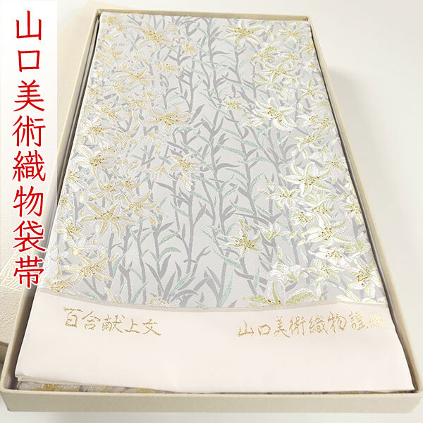 和遊館 即決ofa2676 山口美術織物 唐織 袋帯百合献上文 お仕立て付き