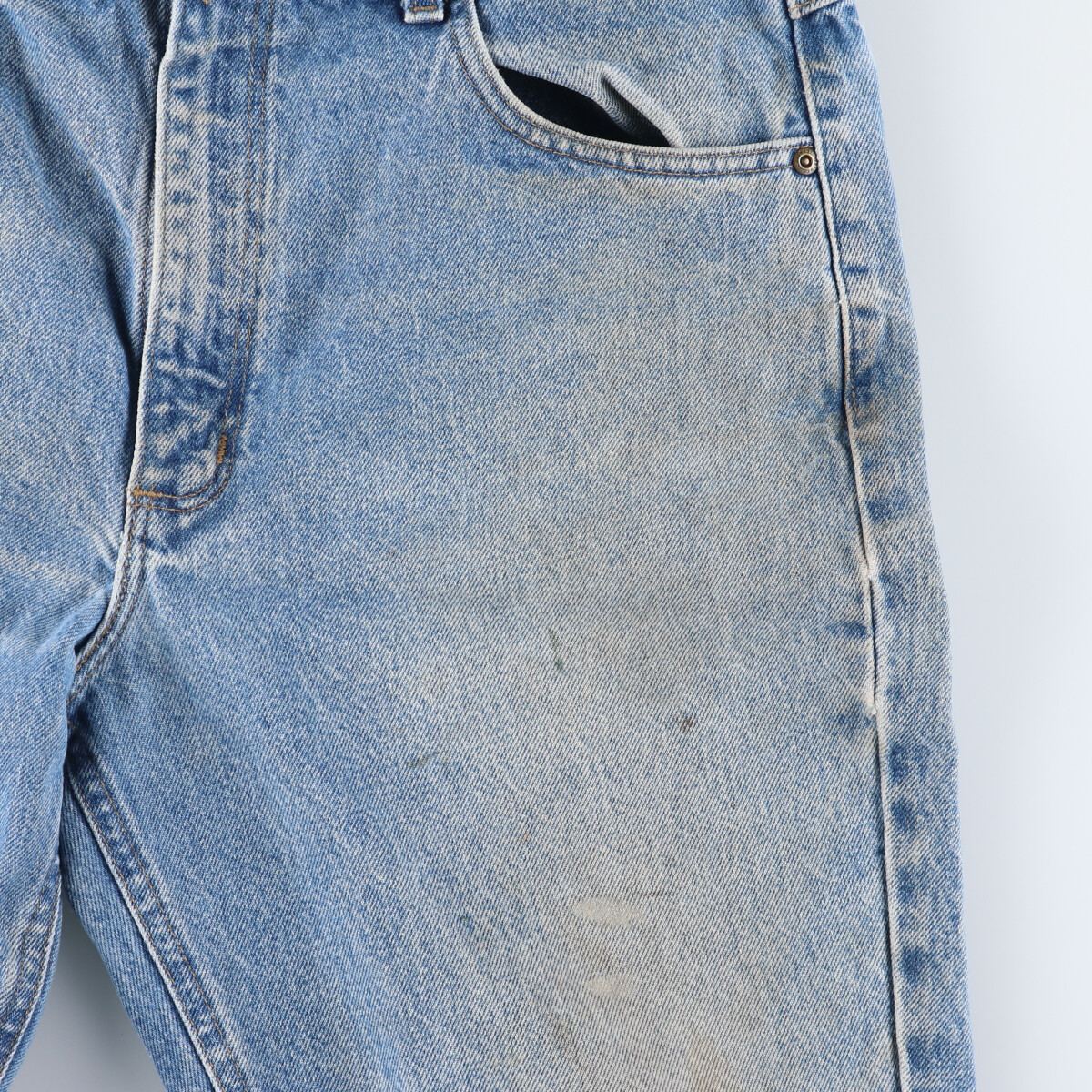 着用感: メンズw35 表記サイズ: 36×32 ウエスト: 90cm 股上: 32cm 股下: 81.5cm もも周り: 68cm 裾周り: 39cm ![]() | ![]() ランク:C USEDデニムですので使用感、擦れ、色落ちなどございますが、まだまだご愛用していただけます。 古着という事をご理解の上ご注文よろしくお願いします。 【状態追記】 ●前、両下腹部・両腿・両膝に汚れ ●後、両ヒップ・両腿に汚れ ●後、両裾内に擦れ ●内側、前両内・前両ポケット口に汚れ ●内側、右下腹部に擦れ |