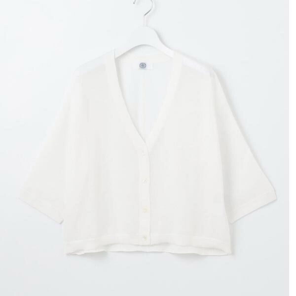 シアー素材で暑い夏でも快適に着用できる、Vネックカーディガン。