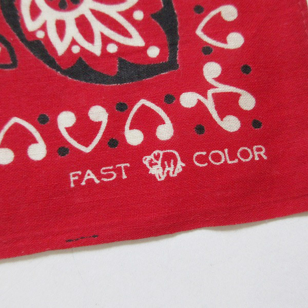 商品名 | レア/USA製/50’s/下鼻/象/ビンテージ/バンダナ/片耳/赤/FAST COLOR/エレファントブランド/コットン/アメリカ製/D64 |