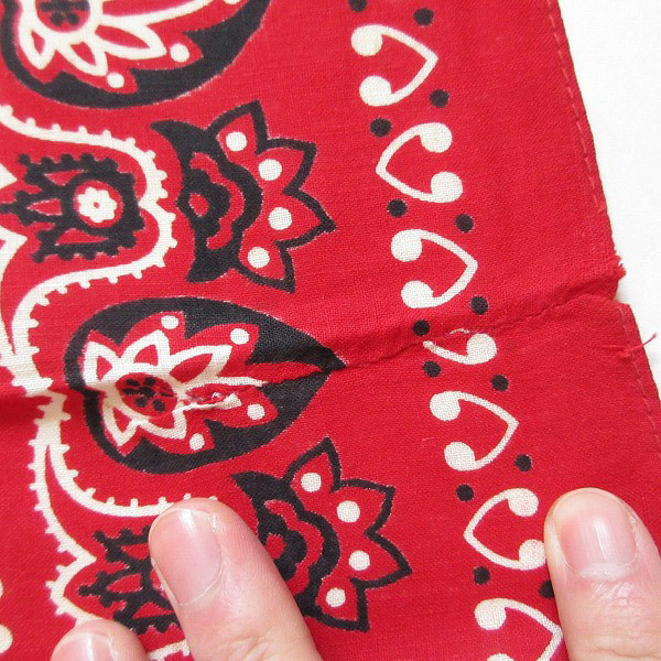 アメリカから買い付けたアイテムです。 1950年代製の希少なビンテージ バンダナです。 下鼻象のFAST COLOR記載。 コットン素材の片耳生地です。 7.5cm程の裂けリペアがありますが、それほど目立ちません。 縁の折り返し部のほつれなど多少使用感もありますが、まだまだご利用いただけます。 人気のビンテージ バンダナです。是非ご検討ください。 |