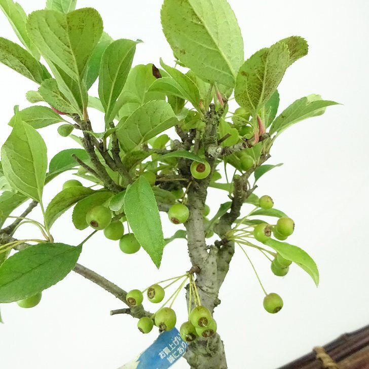 | ■植物ですので撮影時期や季節によって剪定などの手入れにより写真から変化がございます。撮影日をご確認のうえ、ご注文ください。 【海棠盆栽】 深山海棠は植物学的にはズミの総称です。山野の日当たりの良い場所に生えています。別名をコリンゴともいいます。名前の由来は「染み」で樹皮を黄色の染料にしたことによります。花は白色か淡紅色。秋に熟する実は食用。ここでは、赤実のズミをミヤマカイドウ。黄実に熟するものをキミズミとして分けています。 |