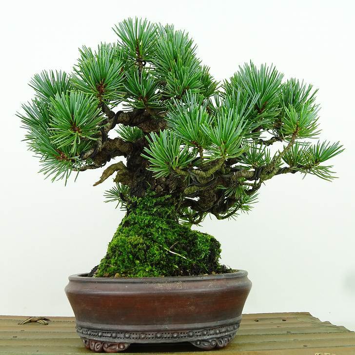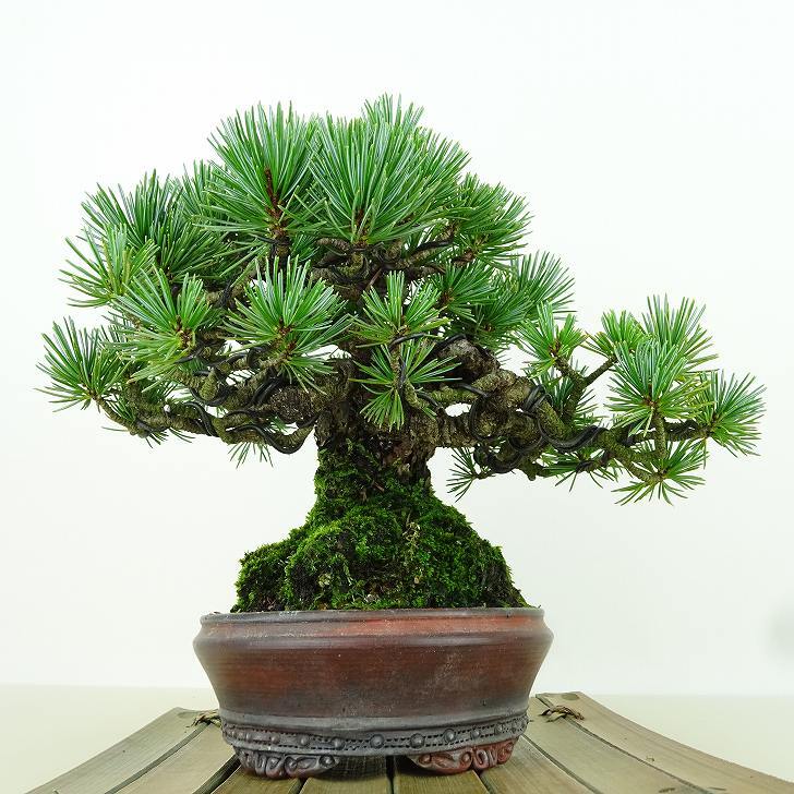 ■植物ですので撮影時期や季節によって剪定などの手入れにより写真から変化がございます。撮影日をご確認のうえ、ご注文ください。 【五葉松盆栽】 日本固有のマツであり、平安時代から観賞用として神社仏閣などの庭園に植栽されています。銀色がかった葉が美しく成長が遅い上、木質が柔軟で枝を曲げやすいため、盆栽に使われることも多い。樹皮は暗灰色で、老木になると裂片がうろこ状に剥がれ落ちます。 |