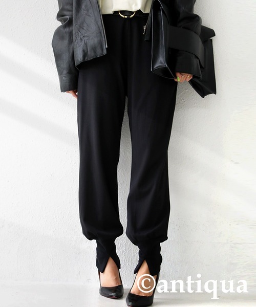 キーワード:パンツ レディース ウエストゴム ストレッチ ハイウエスト フルレングス リブ 無地