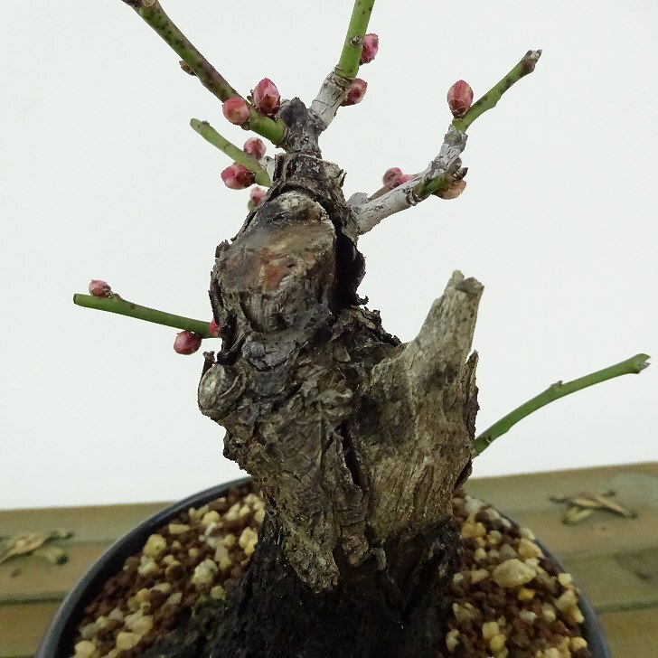 ■植物ですので撮影時期や季節によって剪定などの手入れにより写真から変化がございます。撮影日をご確認のうえ、ご注文ください。 【花梅盆栽】 梅は品種が多く、たくさんの品種の育成や改良が行われ、花の鑑賞を楽しむ花梅、実の採取を目的とする実梅など300種類以上あります。 大きく3系統に分類でき、野梅系、緋梅系、豊後系に分類でき、野梅系の梅はもっとも原種に近い仲間になります。 2月から3月頃にかけて素敵な花を咲かせ見ごろを迎えます。 |